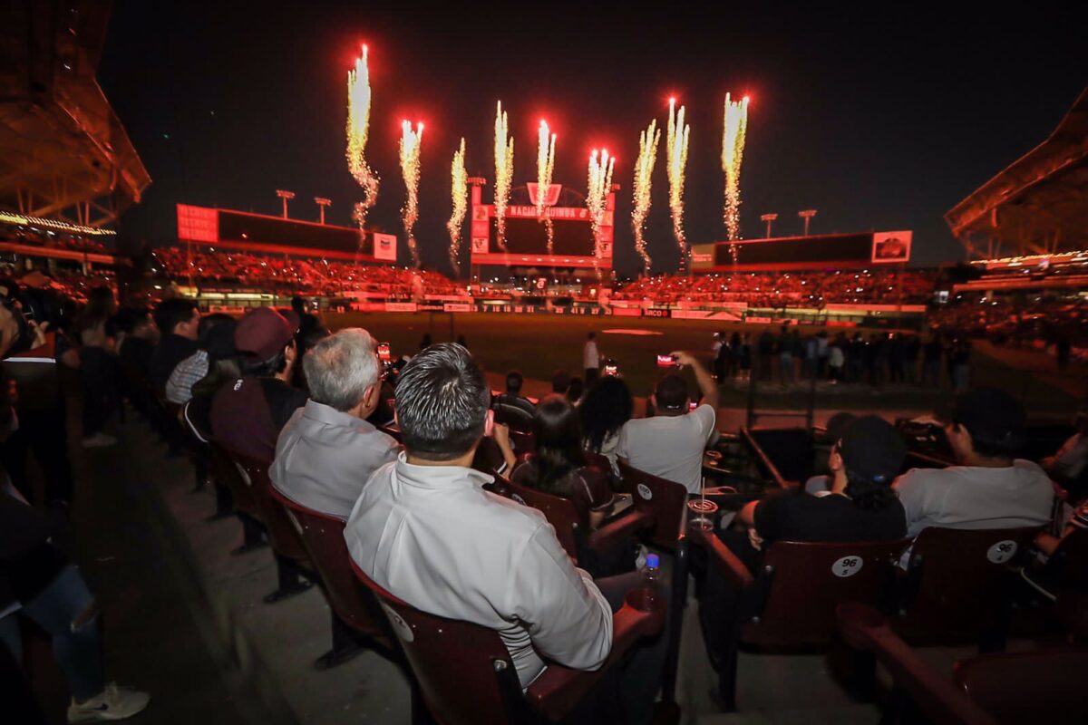 Los Mochis, Ahome, Sinaloa a 12 de Octubre del 2022.- Con una fiesta completamente familiar, donde se realizó un gran espectáculo de fuegos artificiales y de drones, se llevó a cabo la ceremonia de inauguración de la edición 65 de la Liga Arco Mexicana del Pacífico en esta ciudad, donde además se celebró el 75 aniversario de Cañeros de Los Mochis.