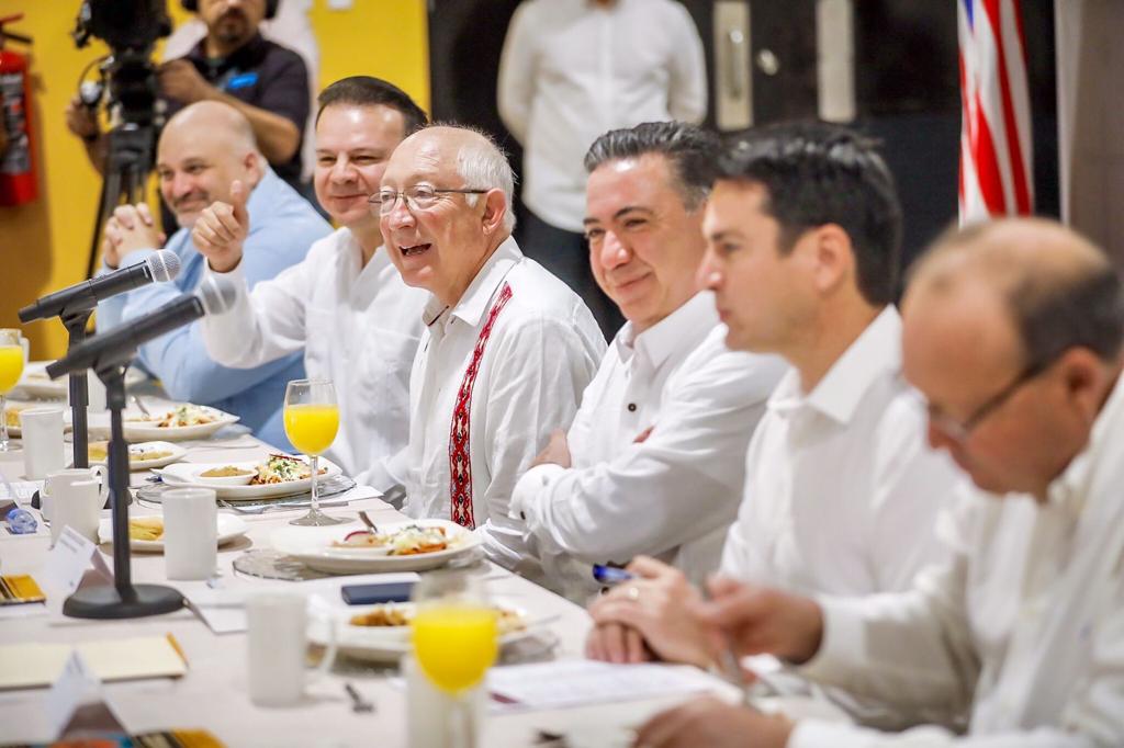 “Si nos acompaña el embajador Salazar y los tres gobernadores nos ponemos de acuerdo en ir y tener una plática con el presidente -López Obrador- sobre este tema, nos ayudaría mucho que estuviera el embajador, para mostrar el interés de Norteamérica, y yo secundaría esta propuesta que hace Esteban”, dijo.