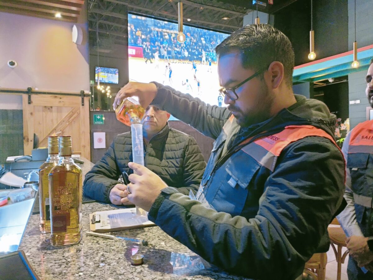 CULIACÁN, SINALOA, a sábado 10 de diciembre de 2022.- Con el objetivo de detectar e inmovilizar alcohol adulterado en antros, bares y restaurant-bares de la ciudad, y evitar así riesgos a la salud de los consumidores, la Secretaría de Salud, a través de la Comisión Estatal para la Protección contra Riesgos Sanitarios emprendió un operativo sorpresa en estos establecimientos.