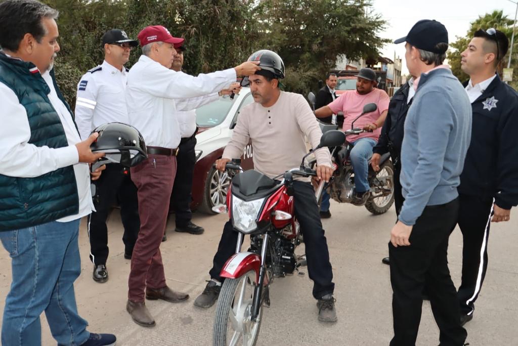 El Alcalde de Ahome explicó que se trata de un apoyo que llegó a través de la fábrica de motos Italika, por lo que implementó un operativo, con apoyo de la Secretario de Seguridad y Protección Ciudadana y la Dirección de Tránsito, para entregar, de manera gratuita, estos equipos de seguridad.