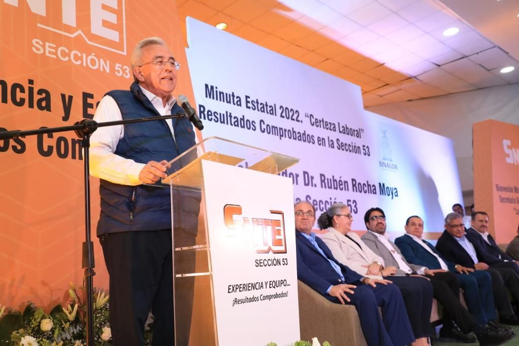 El mandatario estatal primeramente acudió a las instalaciones del SNTE 53, para suscribir con el secretario general de la misma, Ricardo Madrid Uriarte, teniendo como testigo de honor al líder nacional del SNTE, la minuta de acuerdos para el 2023, y momentos antes, hizo entrega a una representación de maestras y maestros de los apoyos que se acordaron en la minuta del 2022, que son la basificación de 300 horas de educación física en el nivel básico, regularización de 25 subdirecciones a directores de secundarias, subsidio anual para el pago del plan interno de los siete Centros de Atención Infantil (CAI), homologación de plazas de arte y adiestramiento con categoría de maestro en enseñanzas especiales, compensaciones al desarrollo administrativo, el pago de nueve días económicos y el aumento del 20 por ciento en el bono para uniformes, la automatización de los quinquenios, recategorización de plazas, aumento del 2 por ciento a jubilados y pensionados que perciban ingresos menores a 10 mil pesos mensuales, y regularización de plazas interinas de más de seis meses en COBAES.