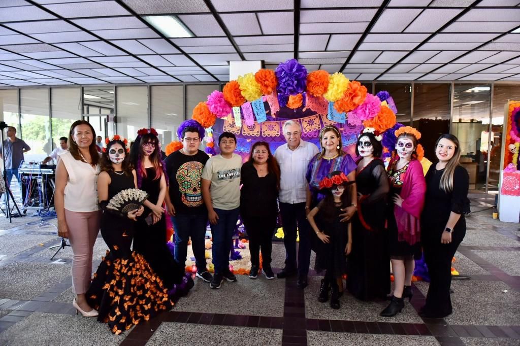Rocha Moya realiza recorrido por la exposición de altares en Gobierno del Estado