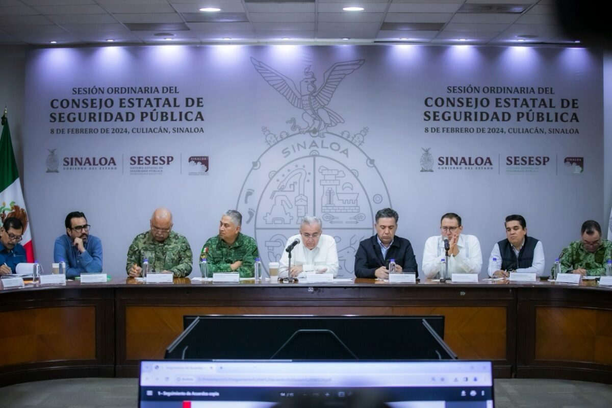 Culiacán, Sinaloa, 08 de febrero del 2024.- Al presidir la sesión ordinaria del Consejo Estatal de Seguridad Pública, el gobernador Rubén Rocha Moya informó que su administración está en condiciones de incrementar al doble el número de policías estatales para reforzar la seguridad, pues afirmó que el gobierno no debe declararse en quiebra para hacer frente al tema de la seguridad pública.