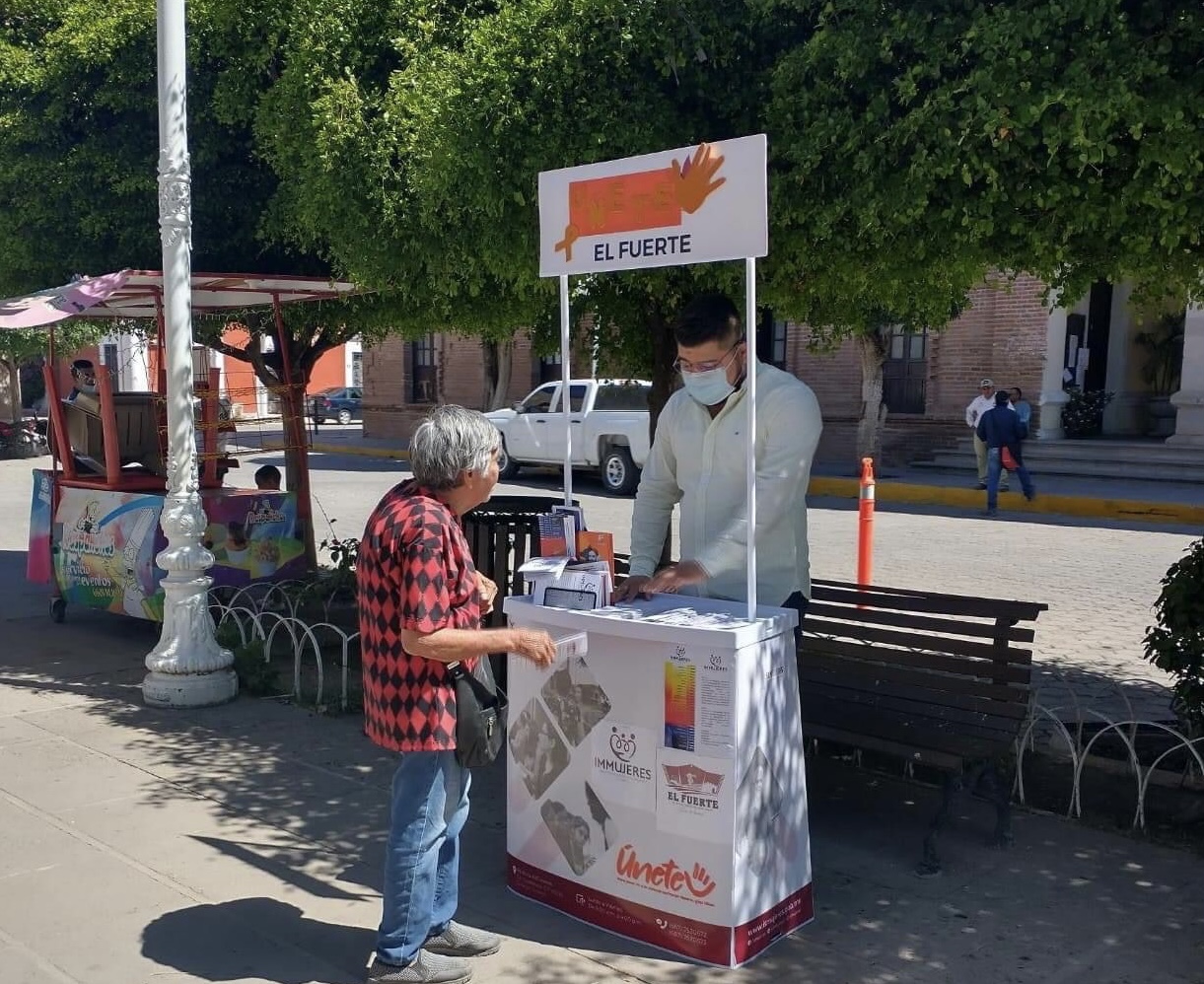 El Fuerte, Sinaloa, 25 de abril del 2021.- El mandatario municipal Gildardo Leyva mantiene un amplio interés por la seguridad y prevención en el tema de la no violencia contra la mujer, conmemorando el día naranja como cada 25 de cada mes, el Instituto Municipal de las Mujeres a cargo de la Directora María José Sañudo Valenzuela, instalaron este lunes un módulo de información con el objetivo de intensificar las políticas públicas a favor de radicar la violencia contra las mujeres.
