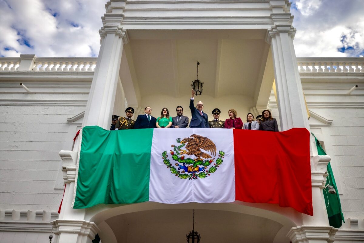 Luego de la conclusión de esta ceremonia, que finalizó con el marcial Toque Tres de Diana en honor a los ascendidos, y el Himno Nacional, el gobernador Rocha, acompañado por los mandos militares y autoridades civiles, subió al balcón de Ayuntamiento para presenciar desde ahí el tradicional desfile cívico militar, que abrió la Banda de Guerra del 94 Batallón de Infantería de la Novena Zona Militar.