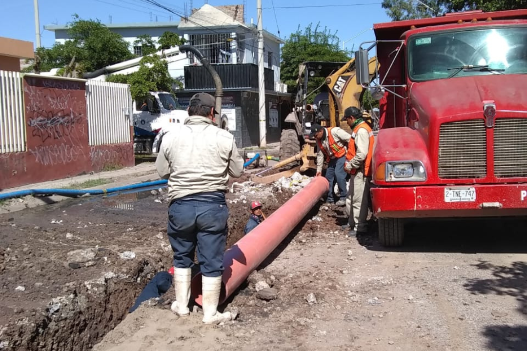 “Quedó reparado el colector y el emisor de drenaje del sector poniente de la ciudad, en donde está el Infonavit Arboledas, por el bulevar Zacatecas, que prácticamente atiende a todo el poniente de la ciudad, desde las colonias San Francisco, Libertad, 72, Estrella, 28 de Junio, El Chamizal, por ejemplo, Colonia 72, Arboledas, Fovissste, en ese colector tenía meses esa fuga ahí, ya había varias manzanas inundadas de aguas negras, el día de hoy quedó completamente reparado.