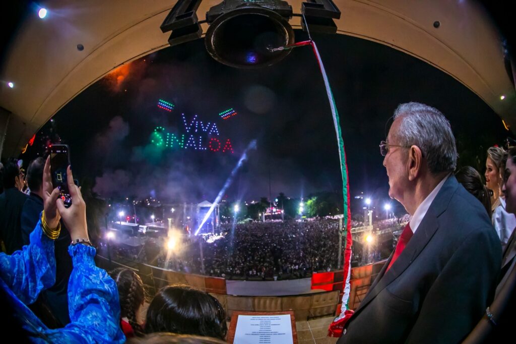 Con espectáculo de drones, Rocha da el grito de independencia en Culiacán
