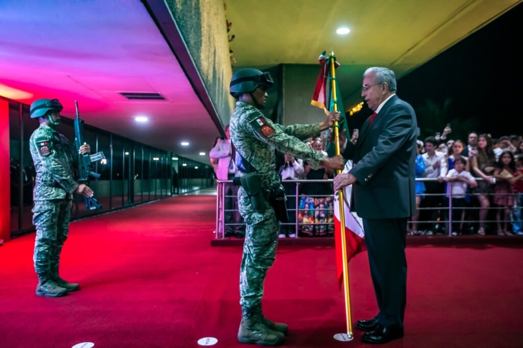 Acompañaron al mandatario estatal en esta ceremonia cívica, la presidenta del Sistema DIF Sinaloa, la doctora Eneyda Rocha Ruiz; el presidente de la Mesa Directiva del Congreso del Estado, el diputado Ricardo Madrid Pérez; el presidente del Supremo Tribunal de Justicia, magistrado Jesús Iván Chávez Rangel; el comandante de la Tercera Región Militar, general de División, Jesús Leana Ojeda; el comandante de la Novena Zona Militar, general de brigada, Alfredo Salgado Vargas; el comandante de la Octava Región Naval, almirante Javier Abarca García; el coordinador estatal de la Guardia Nacional, general brigadier Fructuoso López Vallejo; y el presidente municipal de Culiacán, Juan de Dios Gámez Mendívil.