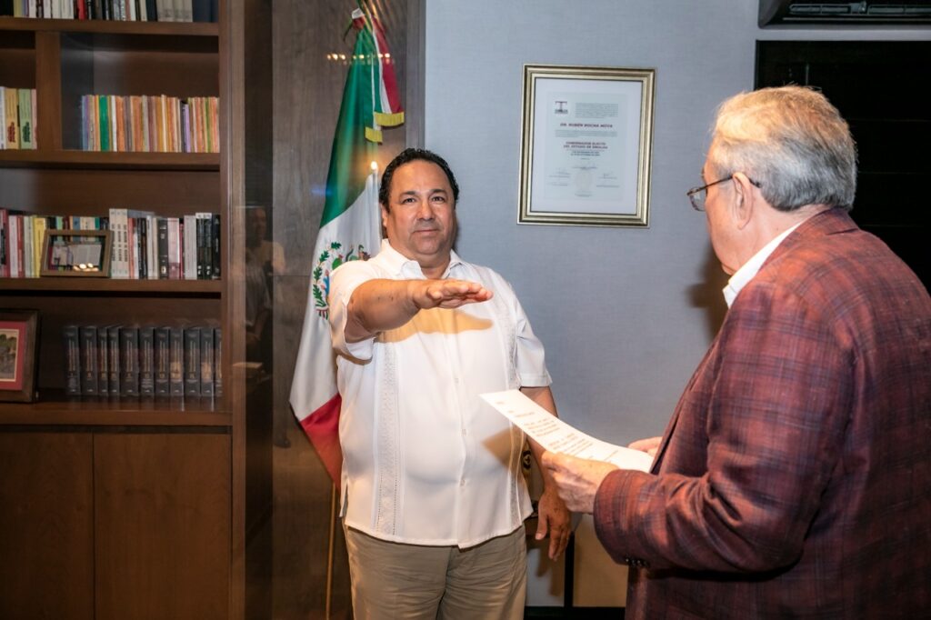 Culiacán, Sinaloa.- La tarde de este lunes el Gobernador Rubén Rocha Moya tomó protesta a nuevos funcionarios de la Secretaría de Turismo. En primer término el mandatario estatal entregó el nombramiento de subsecretario de Planeación, Inversión y Desarrollo Turístico al mazatleco Fernando Pucheta Sánchez, cargo que ostentaba Rafael Mendoza Zatarain.