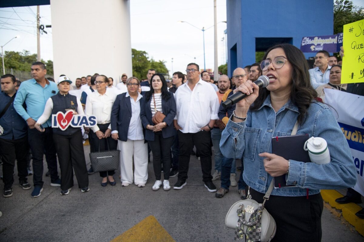 Los participantes rechazaron los hechos del jueves, cuando una docena de personas bloqueó la entrada principal e impidió el acceso a miles de estudiantes y trabajadores, señalando que ninguna inconformidad justifica frenar las clases ni las actividades universitarias; con consignas como “Somos más los que queremos a la UAS” y “Apoyo total a la educación pública”, la concentración reiteró el llamado a la unidad, al diálogo y a la estabilidad institucional.