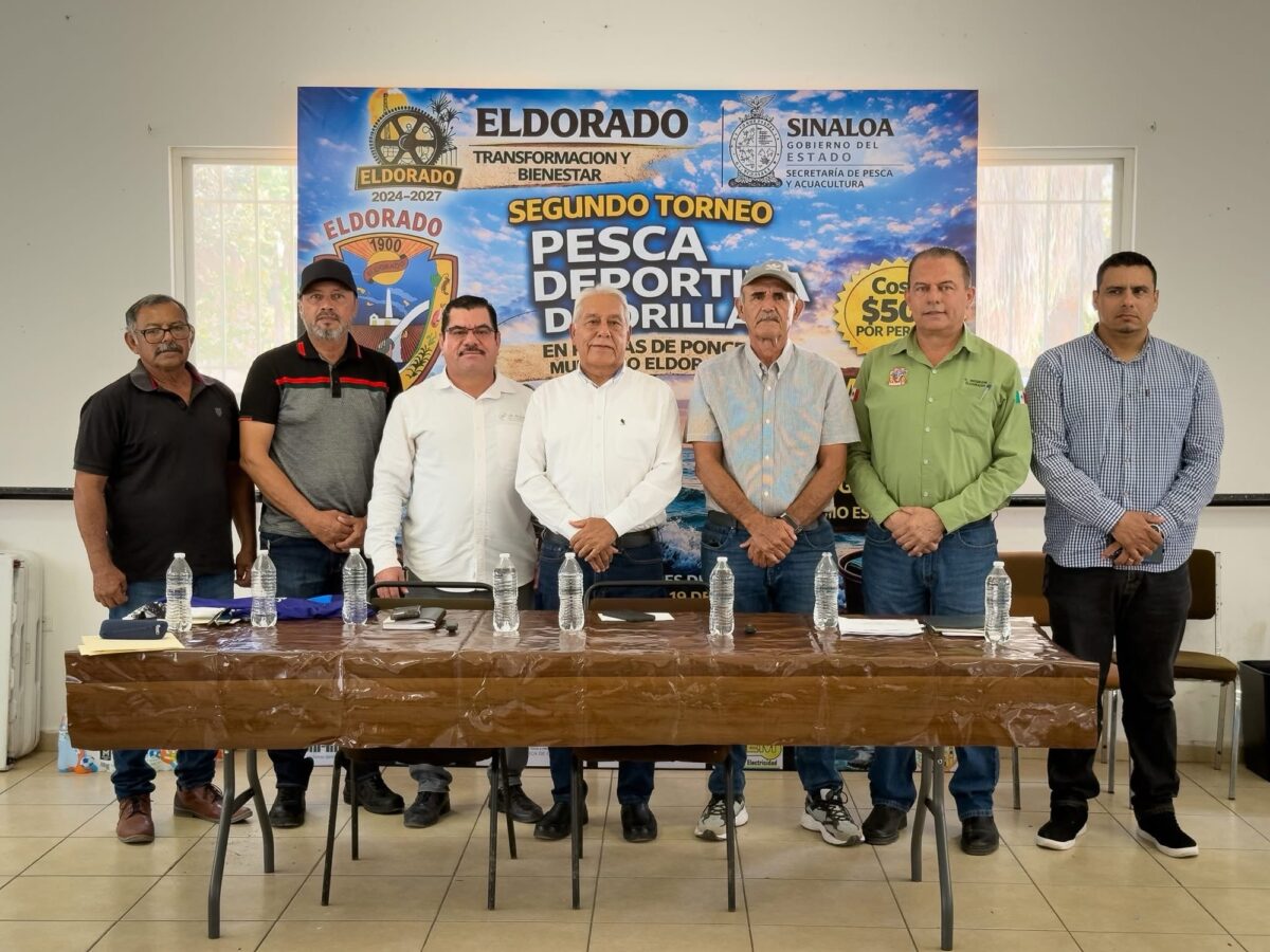 Eldorado, Sinaloa.- El H. Ayuntamiento de Ayuntamiento de Eldorado, encabezado por el presidente municipal Faustino Torres, en coordinación con el Gobierno del Estado de Sinaloa a través de la Secretaría de Pesca y Acuacultura de Sinaloa, presentó oficialmente el Segundo Torneo de Pesca Deportiva de Orilla, que tendrá como sede las emblemáticas Playas de Ponce en el municipio de Eldorado.