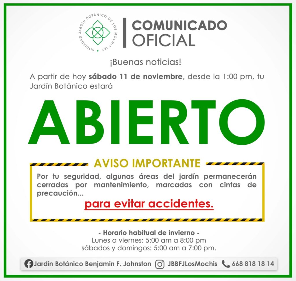 Este sábado 11 de noviembre a la 1 pm hora local, será cuando el pulmón de Los Mochis abra sus puertas de nueva cuenta al público en general.