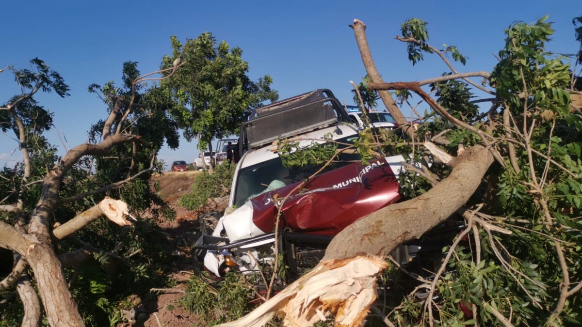 Por no atropellar a un perro, municipales se estrellan en carretera en Los Mochis