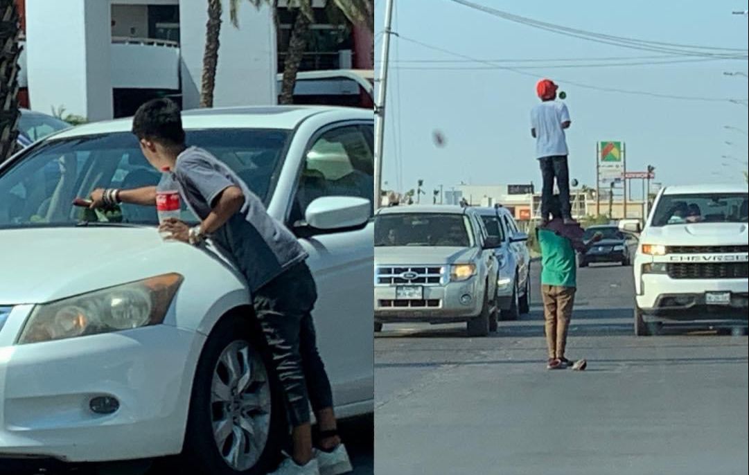 Casos que se han visto son los de niños haciendo malabares con pelotas, pero la mayoría de la población no se da cuenta de que las madres están sentadas esperándolos debajo de la sombra de un árbol, estas son familias, familias que presuntamente son provenientes de Chiapas, señaló.