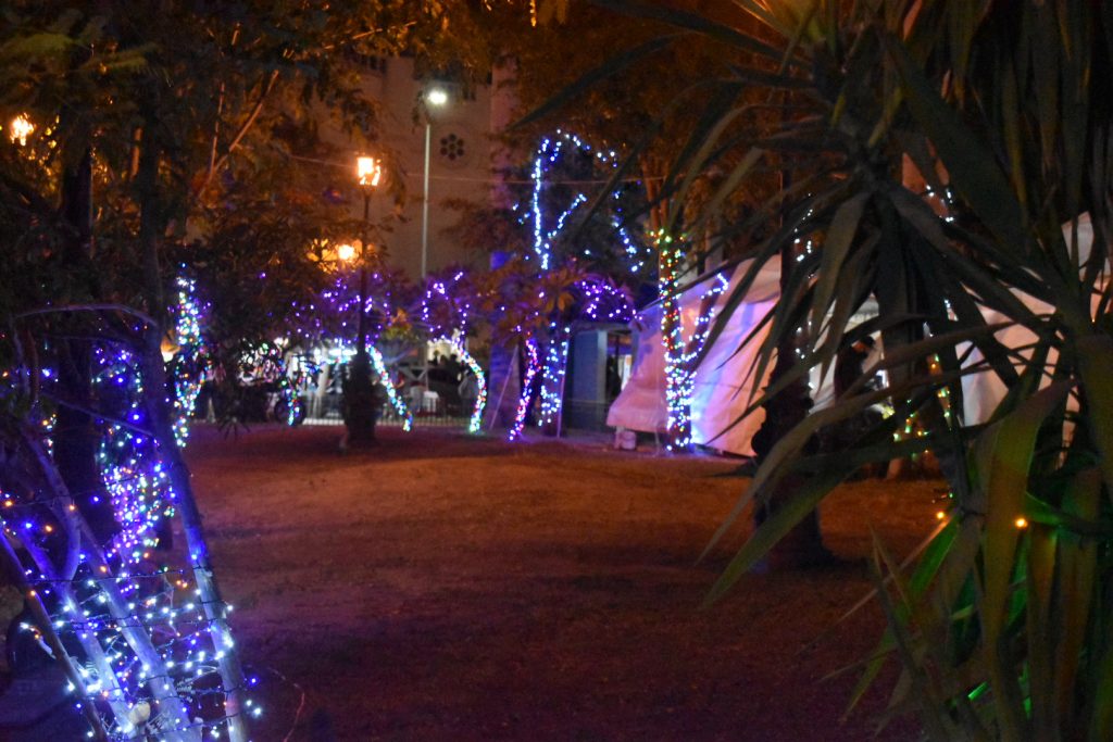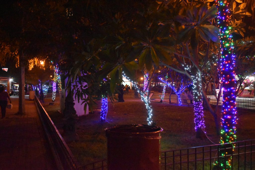 Los Mochis, Sinaloa.- La plazuela 27 de septiembre se iluminó de navidad con luces y focos navideños que autoridades municipales instalaron debido a las fechas decembrinas para que familias Ahomenses pudieran disfrutar de estos momentos de paz y union familiar.