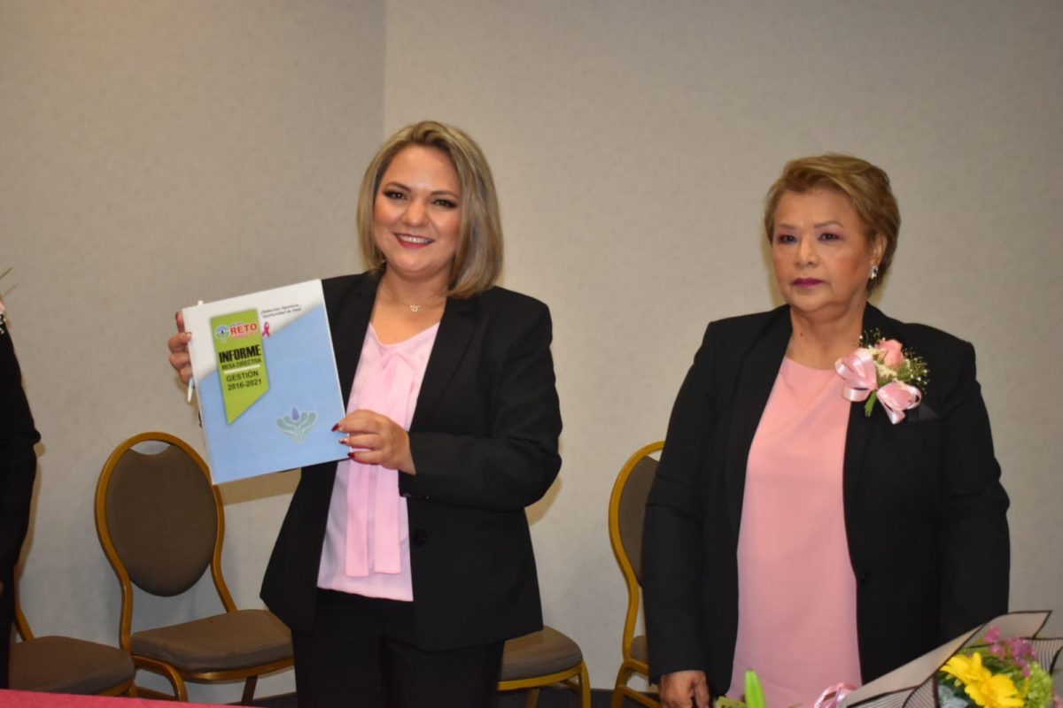 Claribel López, presidenta saliente del periodo 2016 – 2021 brindó el informe de actividades y acciones sociales que durante estos cinco años han realizado en la región para beneficio de pacientes y familias con casos de cáncer de mama que suman más de 5,598 acciones.