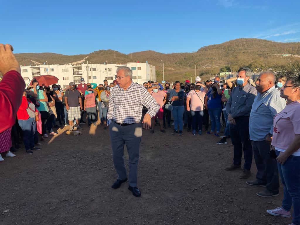 El mandatario estatal dialogó con decenas de vecinos, quienes estuvieron encabezados por el dirigente del Movimiento Amplio Social Sinaloense (MASS), Miguel Ángel Gutiérrez, quien le agradeció este encuentro, que sirvió para constatar el avance que registra la construcción de las casas para este grupo de familias desplazadas, que inició en la administración anterior.