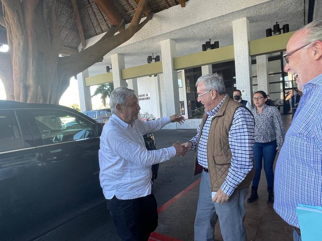 el Gobernador Rubén Rocha Moya recibió al mandatario de la Nación en conocido hotel de la zona dorada en Mazatlán.