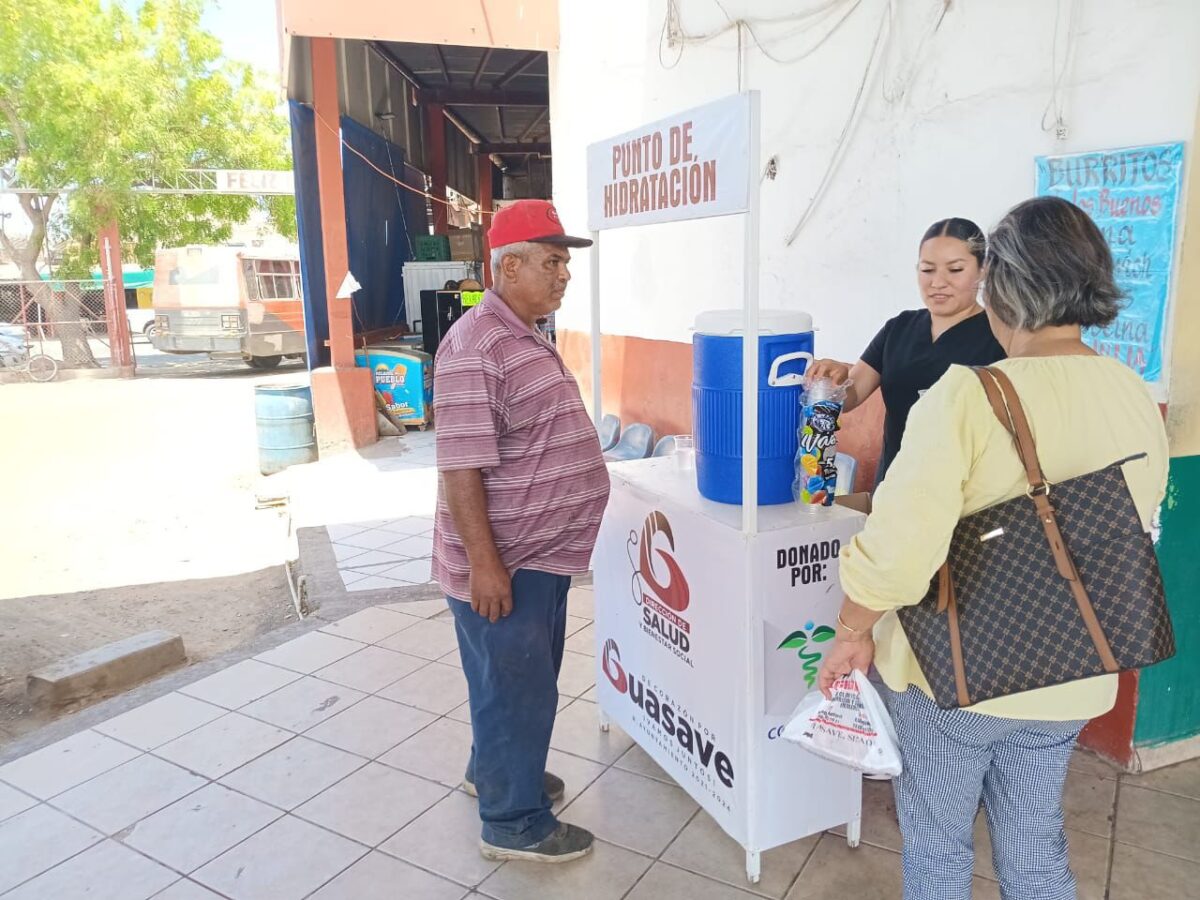 Guasave, Sinaloa.- La Dirección General de Salud activó dos puntos de hidratación en la ciudad, para prevenir golpes de calor y casos de deshidratación, principalmente en niños, mujeres embarazadas y adultos mayores, que es el sector de población más vulnerable.