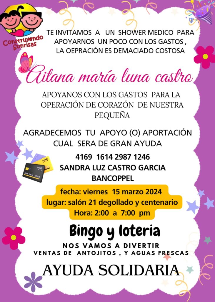 Durante este día, nos sumergiremos en la solidaridad y la diversión con actividades como bingo, lotería y ventas de antojitos y aguas frescas. Cada contribución, grande o pequeña, será un paso hacia la esperanza y el bienestar de esta pequeña guerrilla.