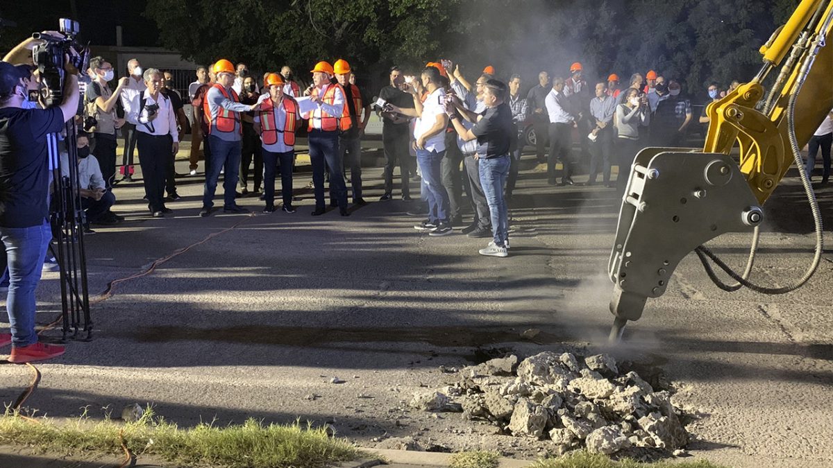 Primeramente a las 12:01 la maquinaria pesada, se situó en los cruces los Bulevares Centenario y Alameda, donde el Primer Edil dio a conocer el inicio de la reparación de losas con concreto hidráulico de 175 metros cuadrados. “Aquí fue una de las visitas que realicé en pre-campaña, donde constaté y prometí que este problema de baches se iba a terminar”, confirmó el Alcalde de Ahome.