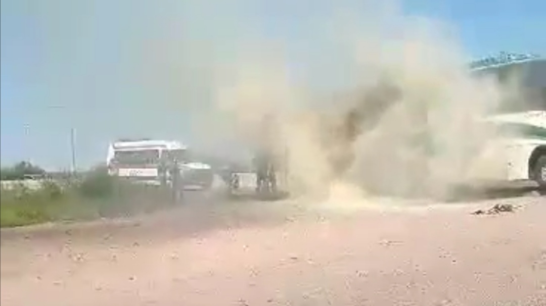 La marina detiene a un autobús, el cual iba en carretera tirando bastante humo y el chófer y pasajeros no se habían percatado, hasta que una unidad de la Marina detuvo el camión para informar al chófer y bajar a los pasajeros para ponerlos a salvo.
