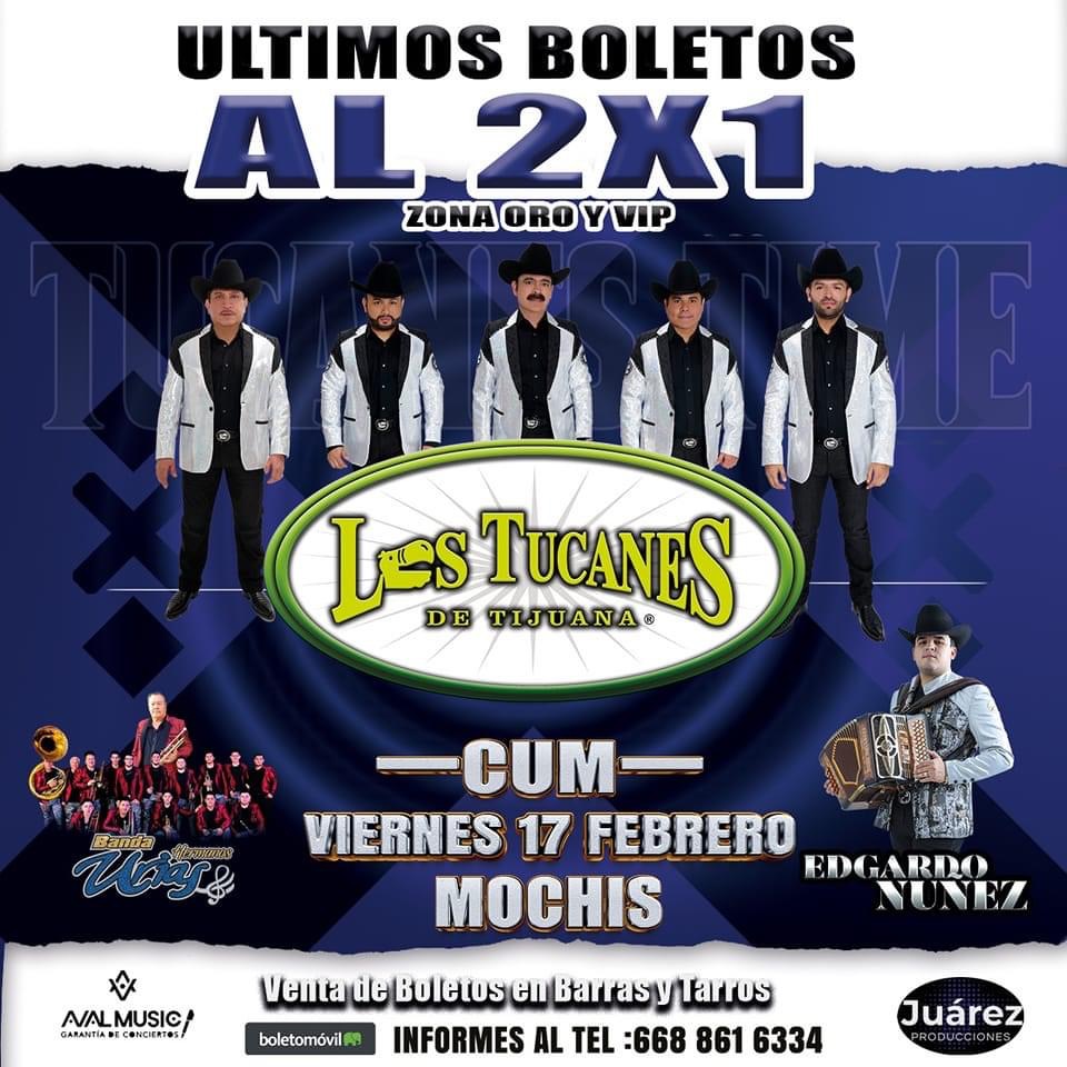 Los Mochis, Sinaloa.- Con su “GIRA TUCANES TIME” El 17 de febrero en el CUM “centro de usos múltiples” venta de boletos en línea boletomovil.com y en barras y tarros de 11am a 9pm