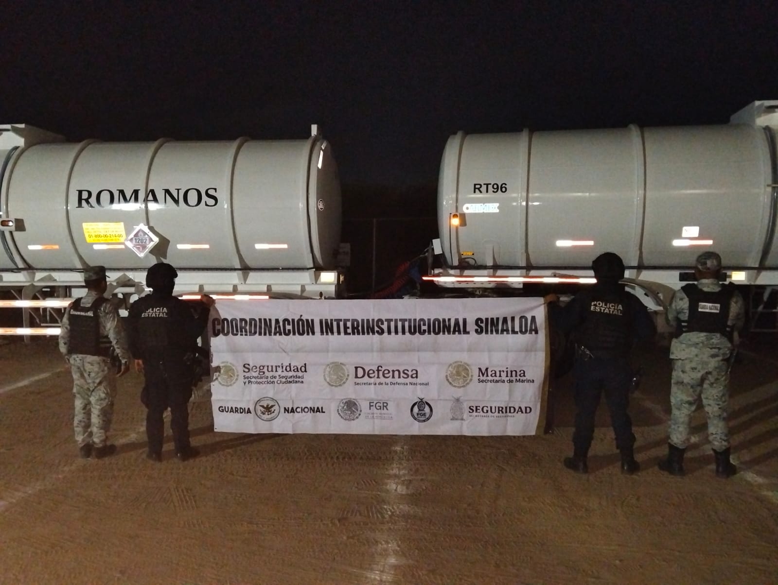 Fue en las inmediaciones de la carretera Internacional México 15 (La Costerita), en el cruce con Álvaro Obregón, a la altura del poblado El Ranchito, donde los elementos de seguridad localizaron un tractocamión de la marca Kenworth, modelo 2006, con un remolque y semiremolque con capacidad de 33,000 litros cada uno de combustible diésel, y de los cuales el conductor no pudo acreditar su legal procedencia, por lo que se procedió a su aseguramiento.