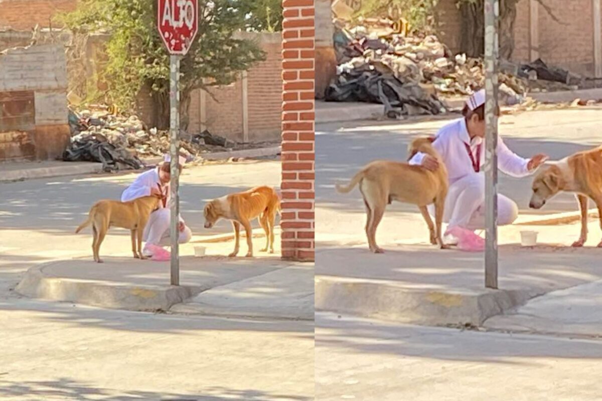 Los Mochis, Sinaloa.- Un gran gesto de empatía y solidaridad ha captado la atención en Los Mochis. Una joven enfermera fue reportada por un ciudadano mientras alimentaba a perritos callejeros en la calle Francisco González Bocanegra, esquina con Matamoros, en la colonia Praderas de Villa.