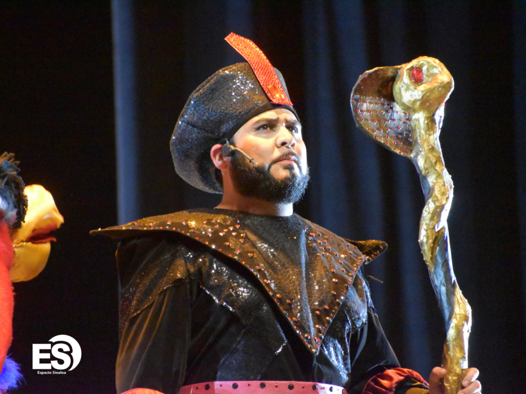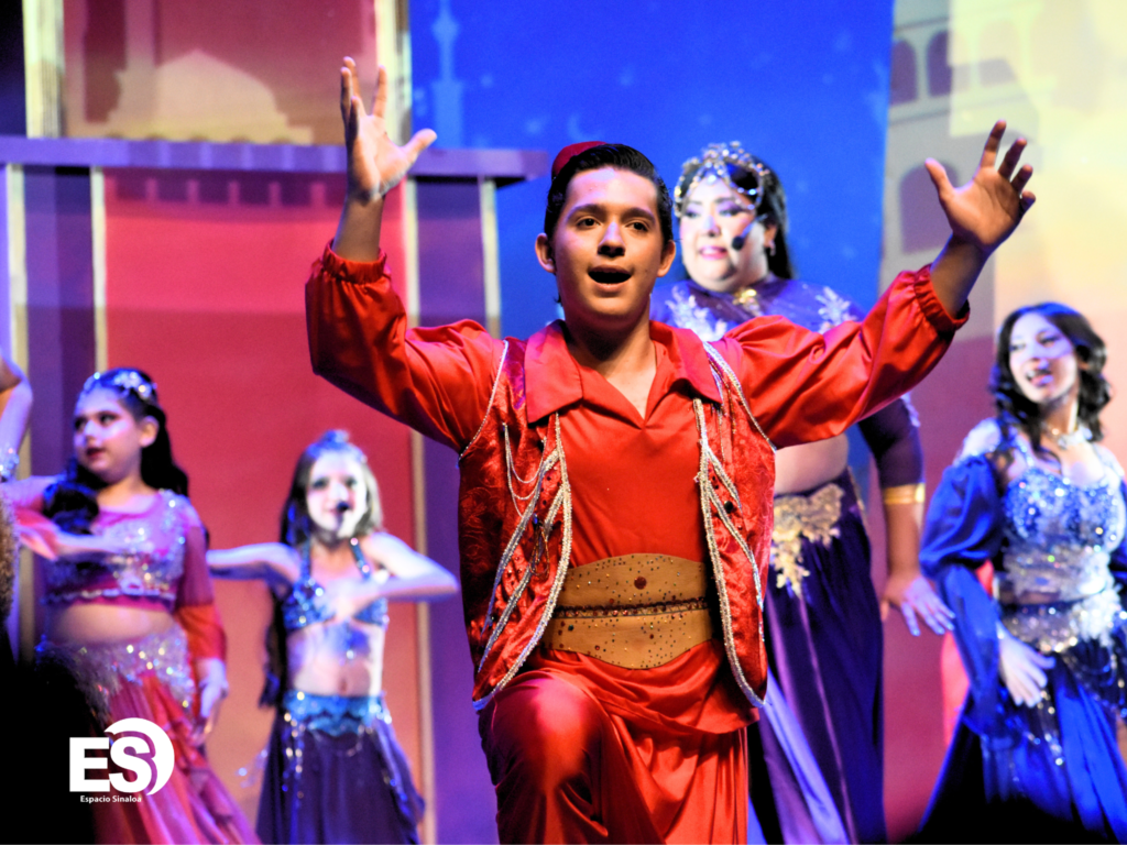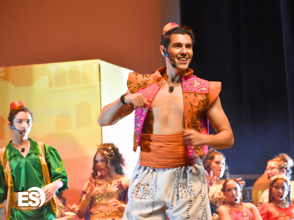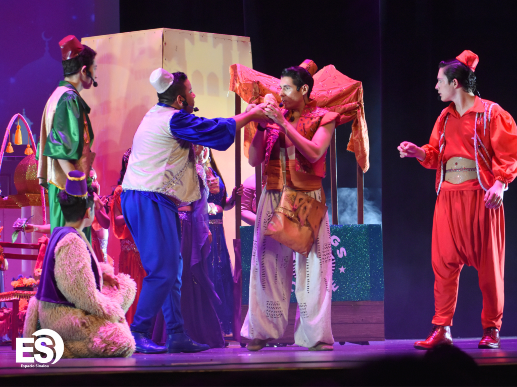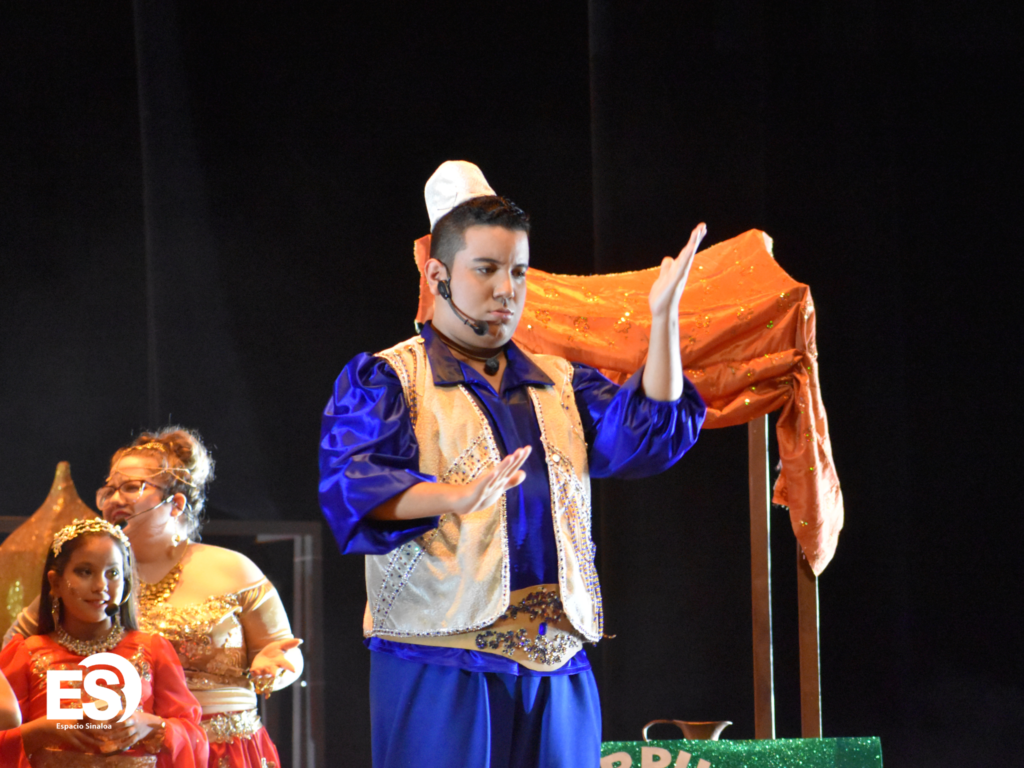 Los Mochis, Sinaloa.- El famoso cuento de Aladin llenó el Teatro Ingenio de magia y diversión, dónde con más de 50 personas en escena el musical cautivó a chicos y grandes con un lleno total del recinto artistico.
