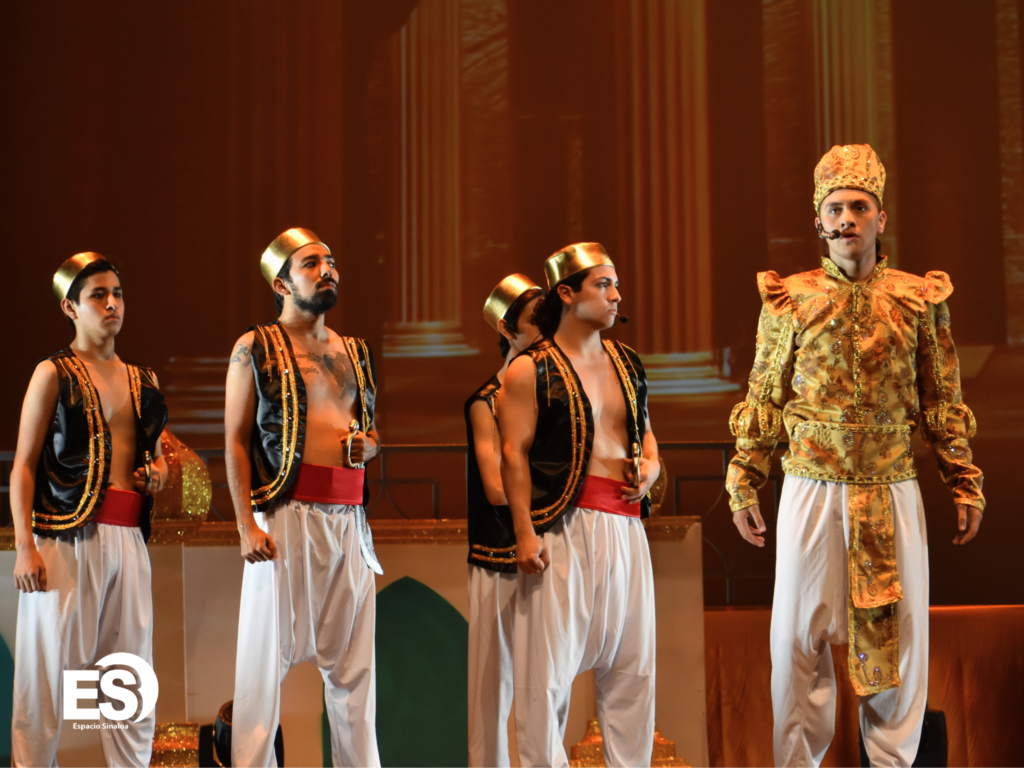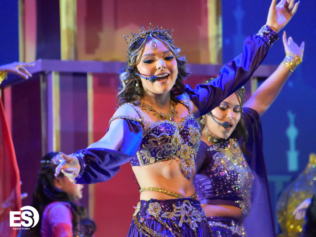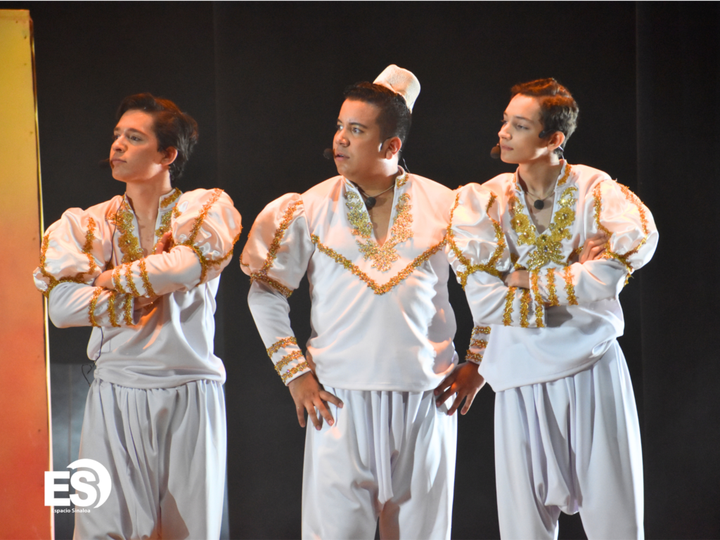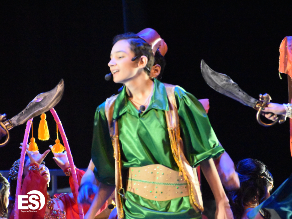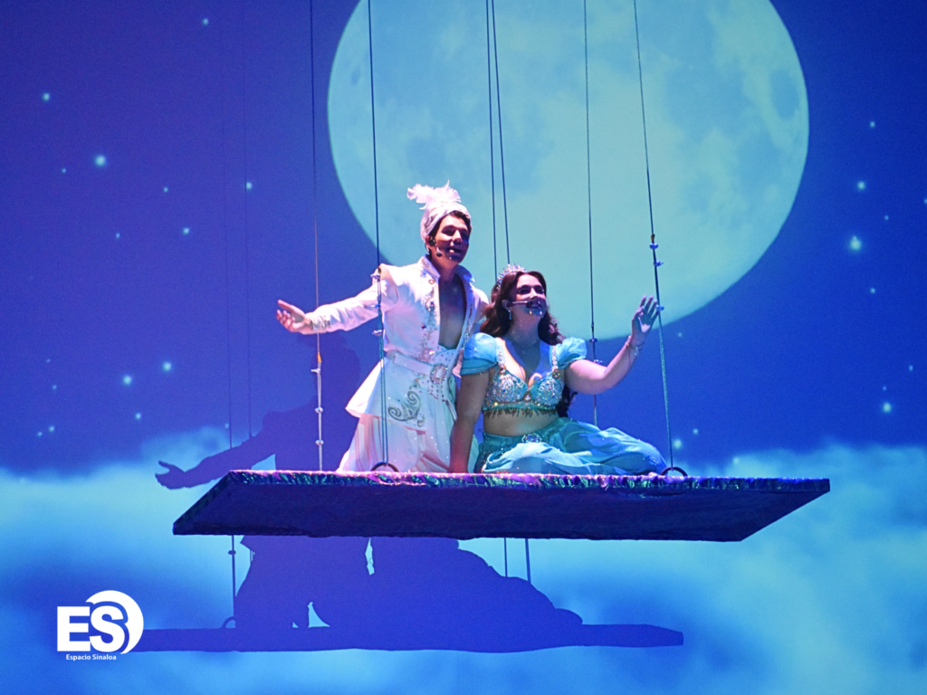 Los Mochis, Sinaloa.- El famoso cuento de Aladin llenó el Teatro Ingenio de magia y diversión, dónde con más de 50 personas en escena el musical cautivó a chicos y grandes con un lleno total del recinto artistico.