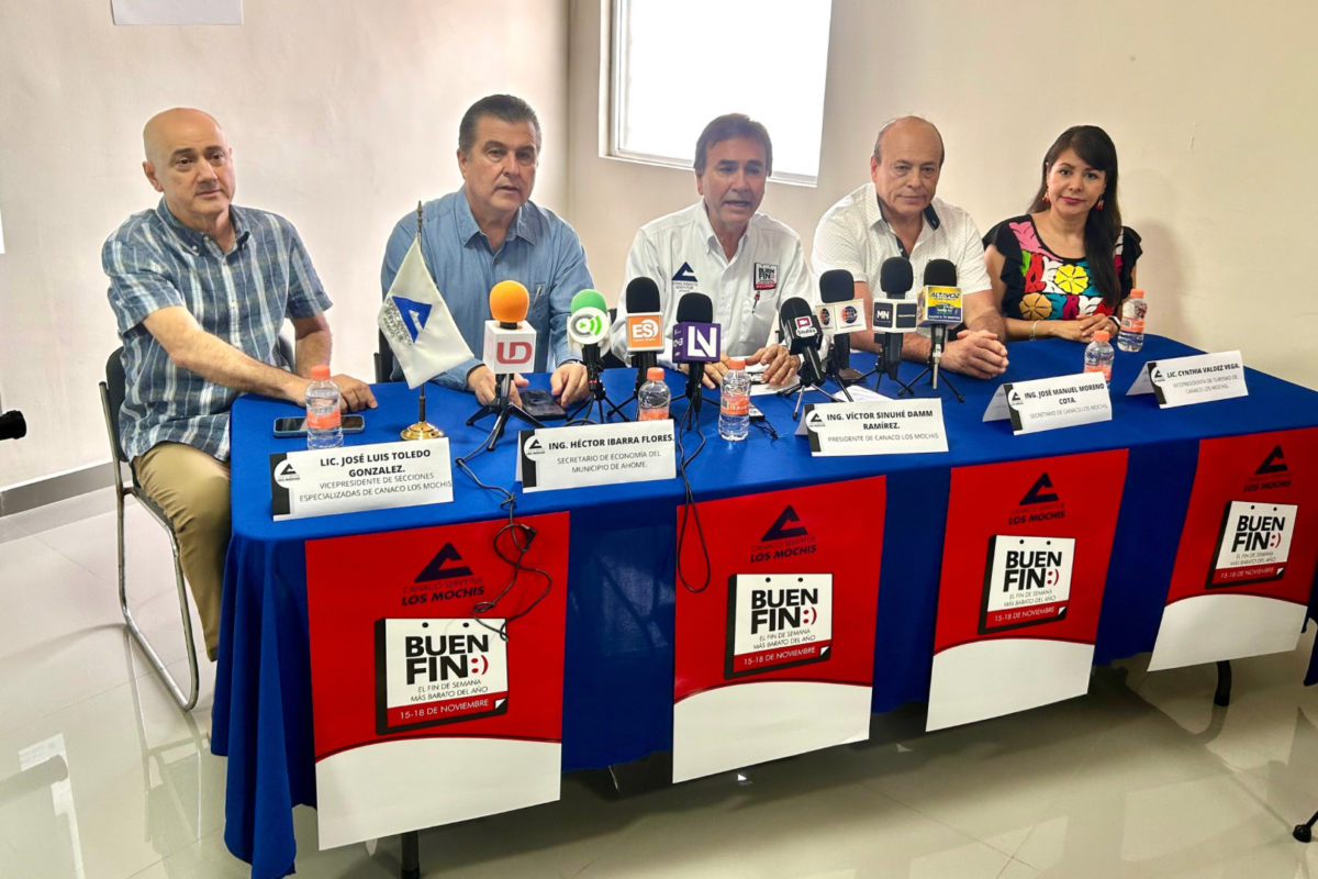 Los Mochis, Sinaloa. – La mañana de este martes 29 de octubre, en conferencia de prensa, la Cámara Nacional de Comercio, Servicios y Turismo (Canaco Servytur) de Los Mochis presentó los detalles del Buen Fin 2024, bajo el lema “El fin de semana más barato del año”.