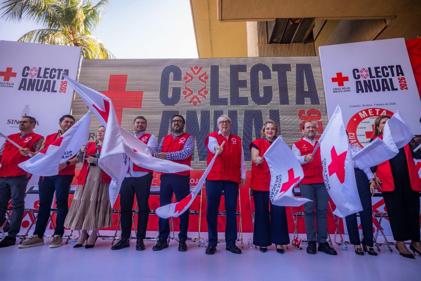 En el arranque de la colecta 2026, estuvieron presentes Rodolfo Valenzuela, presidente de la Mesa Directiva del Congreso; Teresa Guerra, presidenta de la JUCOPO; Yeraldine Bonilla Valverde, secretaria General de Gobierno; Joaquín Landeros, secretario de Administración y Finanzas; Cuitláhuac González Galindo, secretario de Salud; Ramiro Ortega, representante de la Guardia Nacional; Arnoldo Jiménez Reyes, representante de la Novena Zona Militar; José Estrada Calvillo, representante de la Cuarta Región Naval; Juan de Dios Gámez, alcalde de Culiacán; Fernanda Rivera de Bloch, coordinadora local del voluntariado de damas de Cruz Roja; Ignacio Emilio Escobosa, consejero de la Cruz Roja Culiacán; así como funcionarios federales, estatales, diputados locales y grupos empresariales que realizaron sus contribuciones.