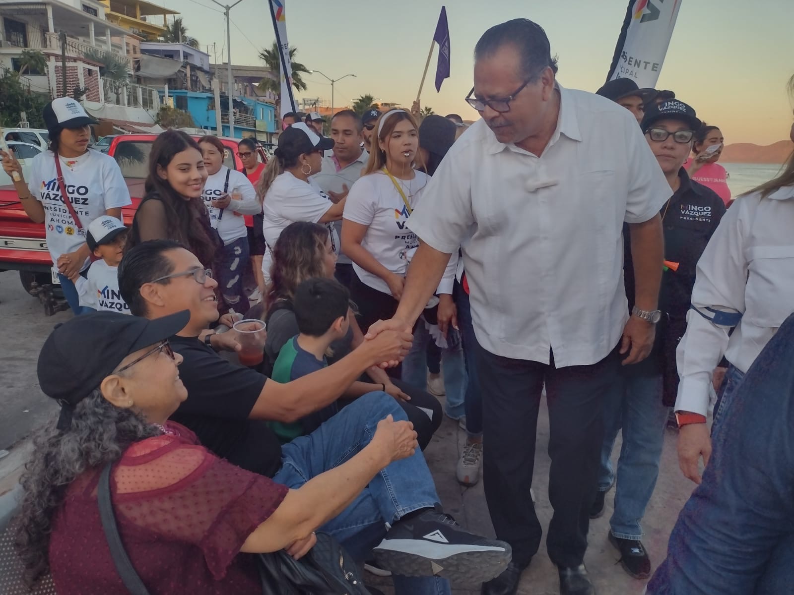 Candidato Mingo Vázquez recorre malecón de Topolobampo; la gente lo recibe con gusto
