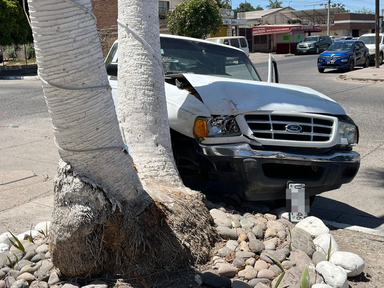 De acuerdo con testigos, el choque ocurrió cuando una de las unidades no respetó la preferencia de paso, provocando el impacto. Tras el golpe, una de las camionetas subió a la banqueta y terminó chocando contra una palma.