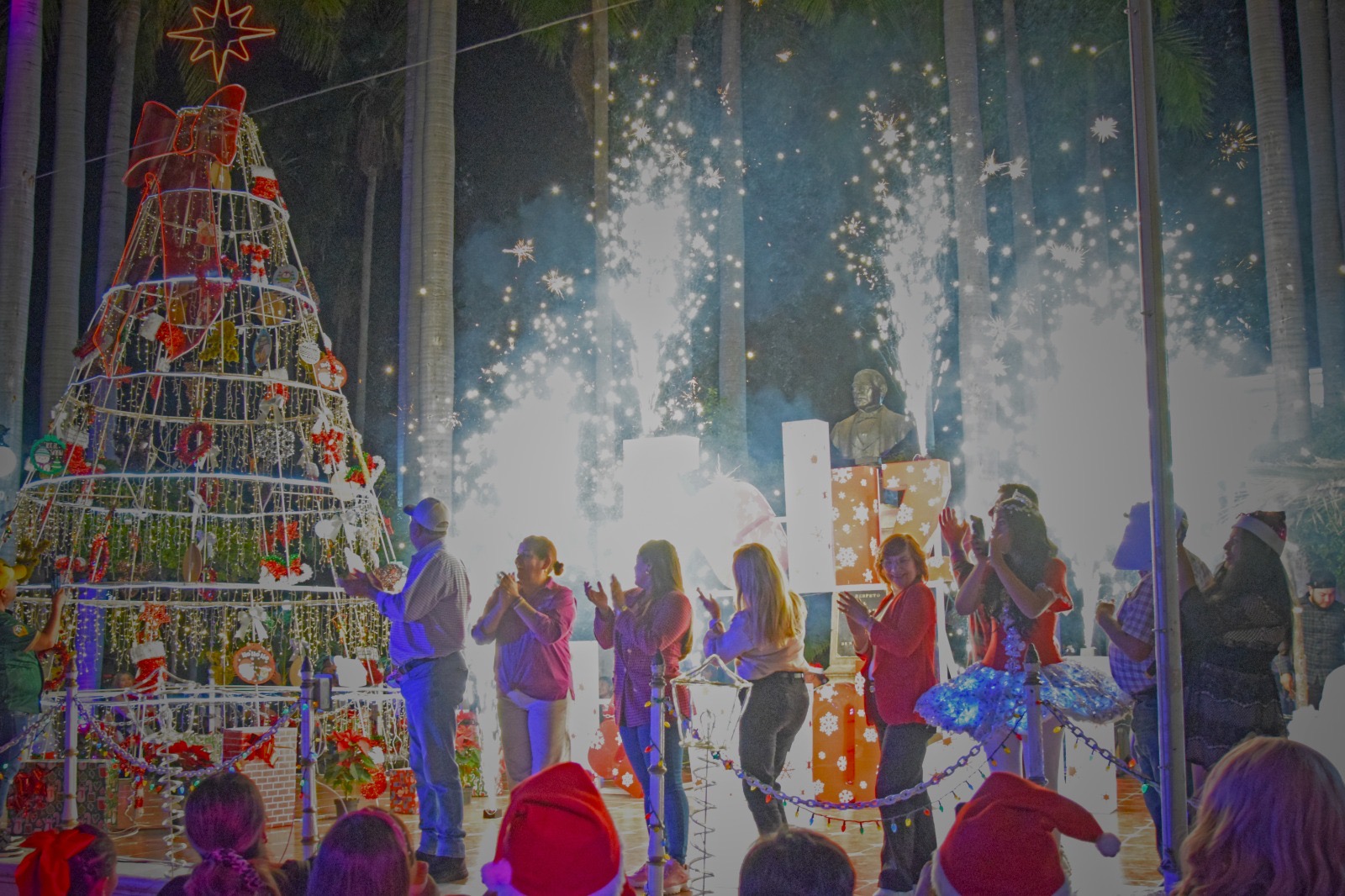 El Fuerte, Sinaloa, a 08 de diciembre del 2023.-El Pueblo Mágico de El Fuerte se sumerge en el espíritu navideño con el tradicional encendido del pino de Navidad. El evento contó con la participación entusiasta de niñas y niños de preescolar, quienes desfilaron con alegría y trajes coloridos, esparciendo la magia de la temporada.