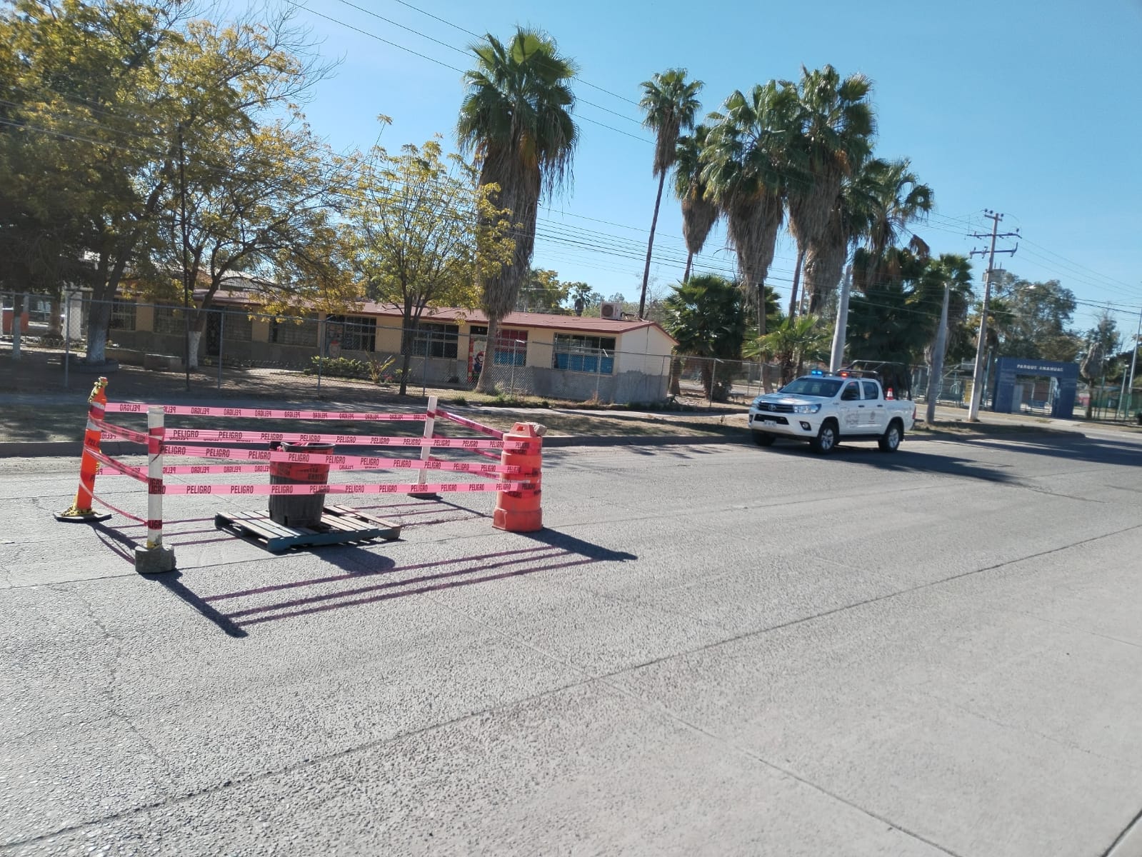 Los Mochis, Sinaloa.- El departamento de Protección Civil detectó un socavón frente a una escuela primaria, al suroriente de la ciudad, reportando el caso a Obras Públicas y a la Junta de agua Potable y Alcantarillado del Municipio de Ahome (Japama).