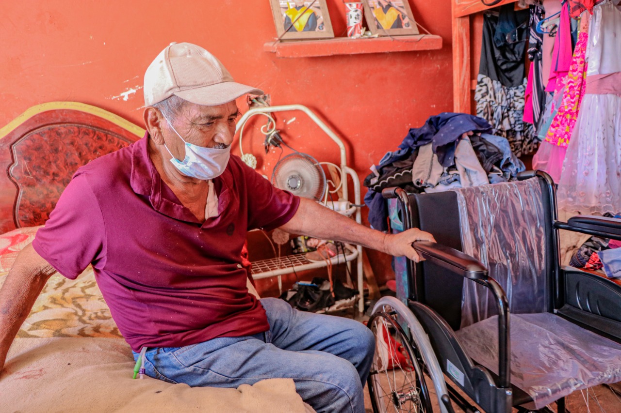 Los Mochis Sin.- Tras varias semanas de momentos difíciles tratando de luchar por su vida en un hospital público, así como de una lenta recuperación que ha causado estragos en su calidad de vida, el señor Pedro Pérez Ramírez de 75 años de edad aseguró que el acercamiento que tuvo su familia con el Sistema DIF Ahome vino a inyectarle motivos para seguir adelante, toda vez que fue incluido en el padrón de beneficiarios de sillas de ruedas de la administración 2021-2024.