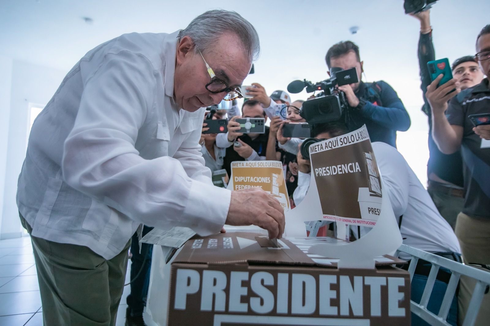 Culiacán, Sinaloa, a 02 de junio de 2024.- Con un llamado a las familias sinaloenses a ejercer con tranquilidad su derecho cívico a votar, el Gobernador Rubén Rocha Moya acudió este domingo a muy temprana hora a la casilla electoral más cercana a su domicilio para depositar su voto.