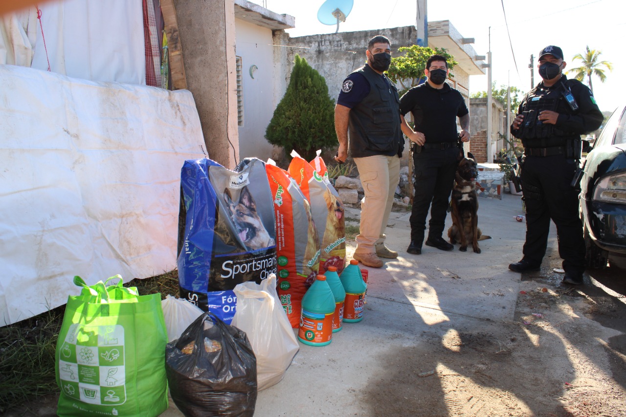 Mazatlán. – En un gesto de amor y solidaridad hacia quienes destinan parte de su tiempo al cuidado y atención de perros callejeros, la Secretaría de Seguridad Pública y Tránsito Municipal entregó un donativo en especie al albergue “Dame tu patita”, ubicado en el fraccionamiento Doña Chonita.