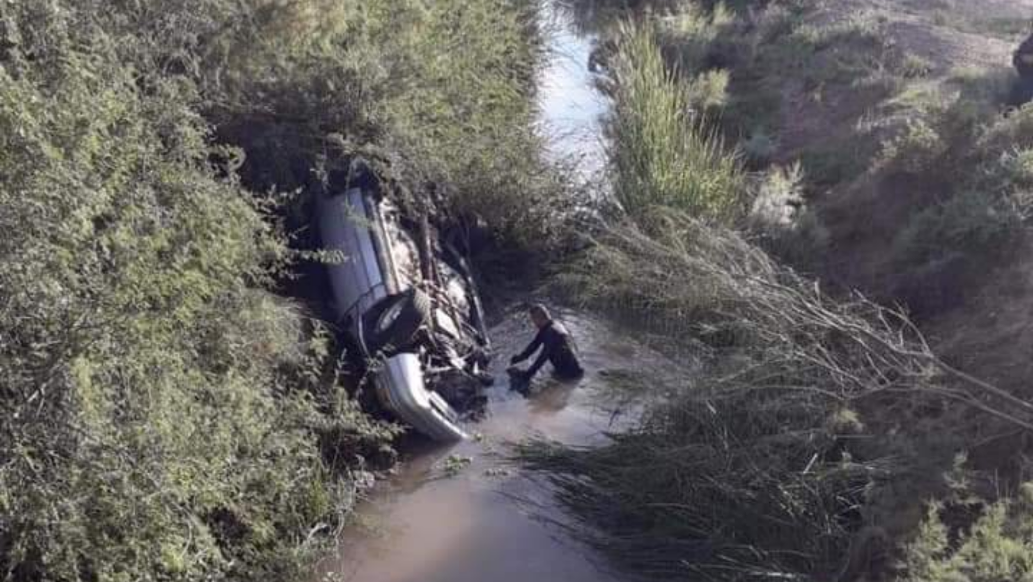 Se reporta accidente automovilístico tipo salida de camino con caída al canal.