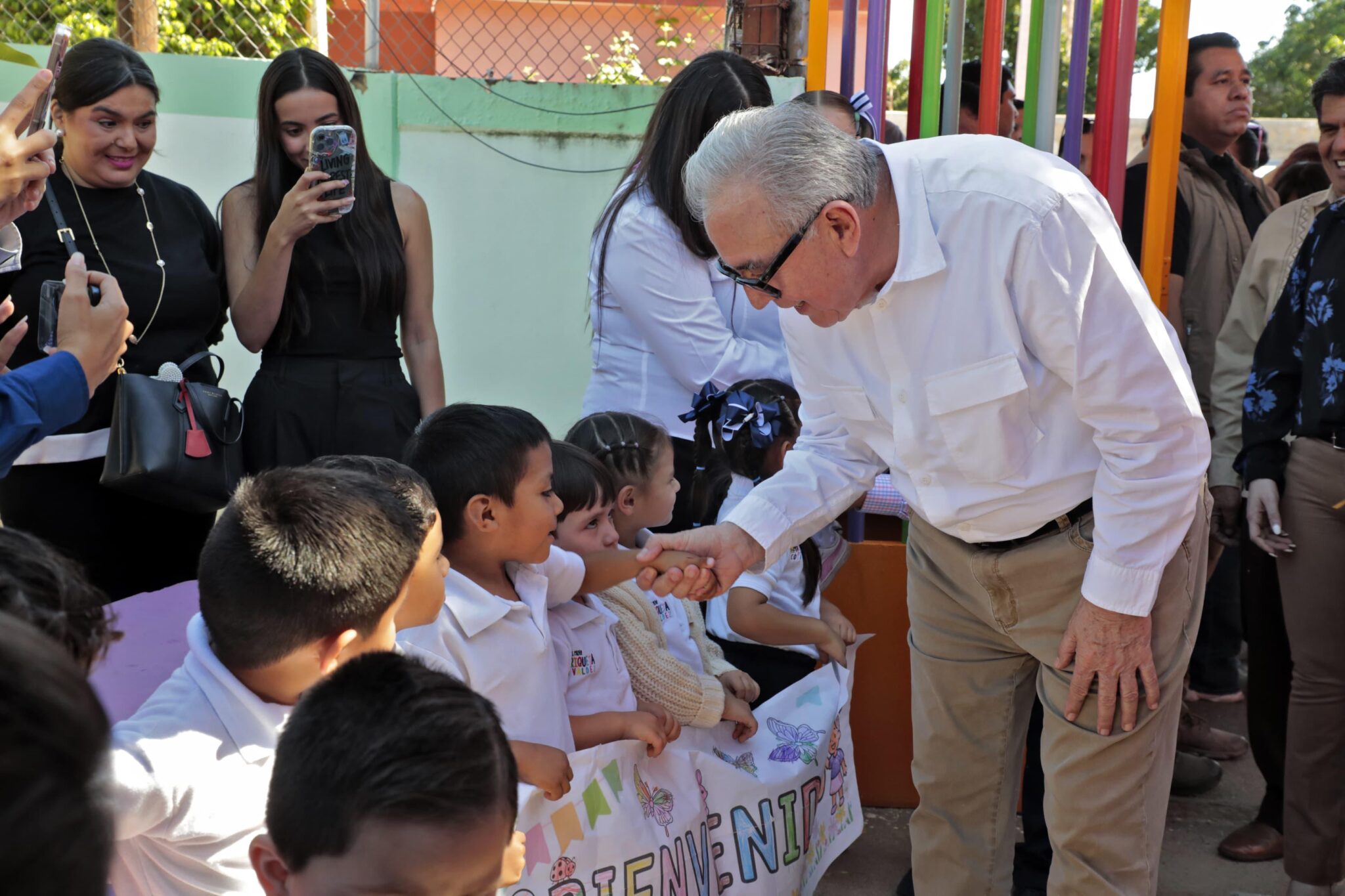 “Nos da gusto entregar esta escuela, que en realidad no está rehabilitada, porque las aulas que había se tumbaron y es importante que ahora tienen aulas nuevas, que están en condiciones de ser habitadas en el proceso educativo por las niñas y los niños de este jardín de niños”, dijo el gobernador Rocha.