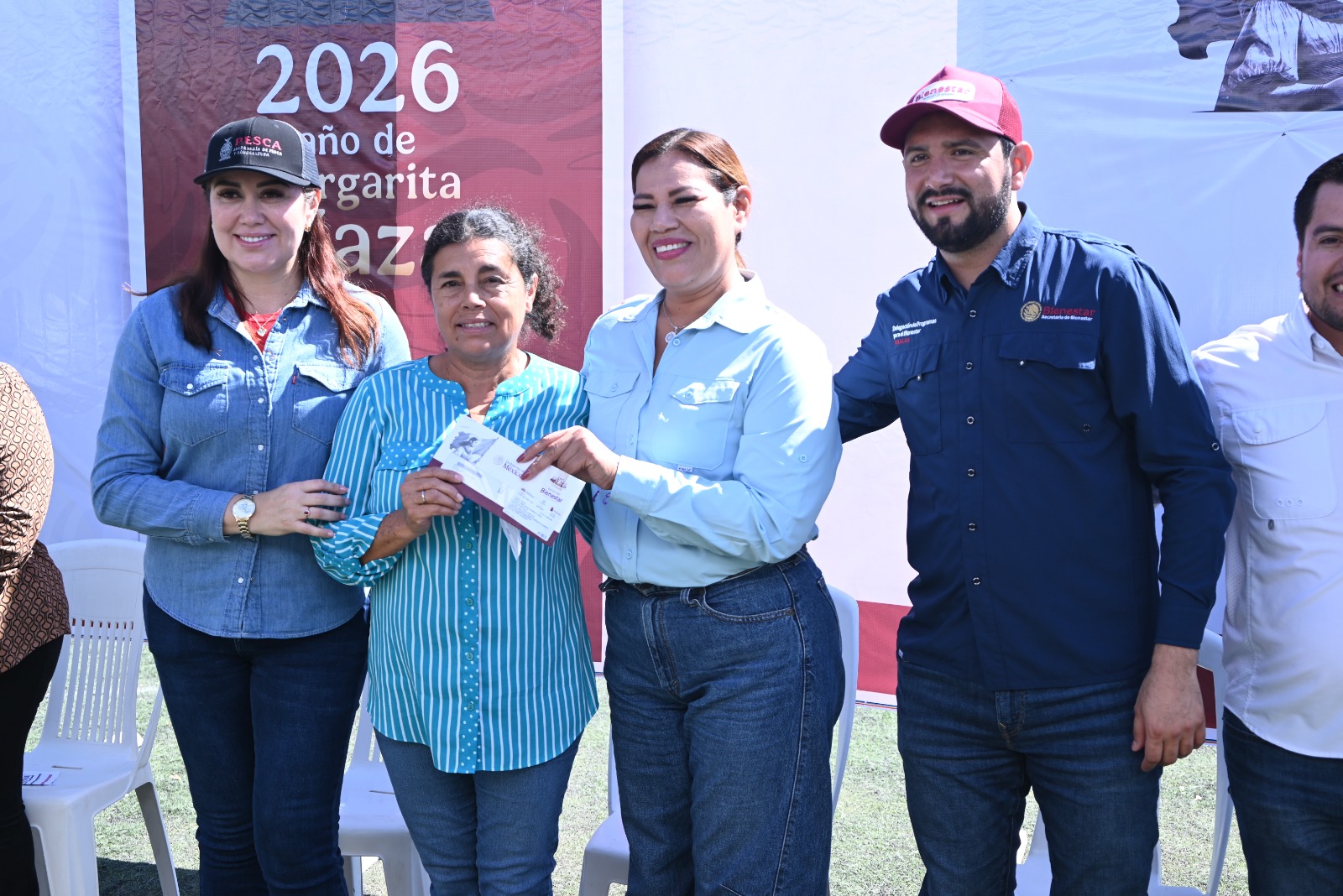 Juan José Ríos, Sinaloa a 12 de marzo de 2026.- En beneficio a las y los pescadores del municipio, garantizando una mejor calidad de vida a las familias, la Delegación de Bienestar, Secretaria de Pesca y Acuacultura donde acompañó el Gobierno Municipal entregaron la renovación de tarjetas de Bienpesca, donde la entrega fue realizada por el Delegado, Ulises Piña García, la Secretaria de Pesca Flor Emilia Guerra Mena y la alcaldesa Evangelina Llanes Carreón.