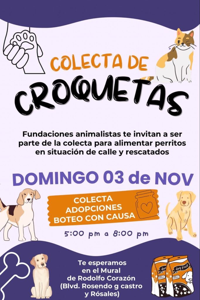 Además, se reconocerá a negocios locales, tanto pequeños como grandes, que demuestren su compromiso social con el bienestar animal y contribuyan en la colecta. Como parte del evento, se realizará un boteo con causa en el cruce de Blvd. Rosales y G. Castro.