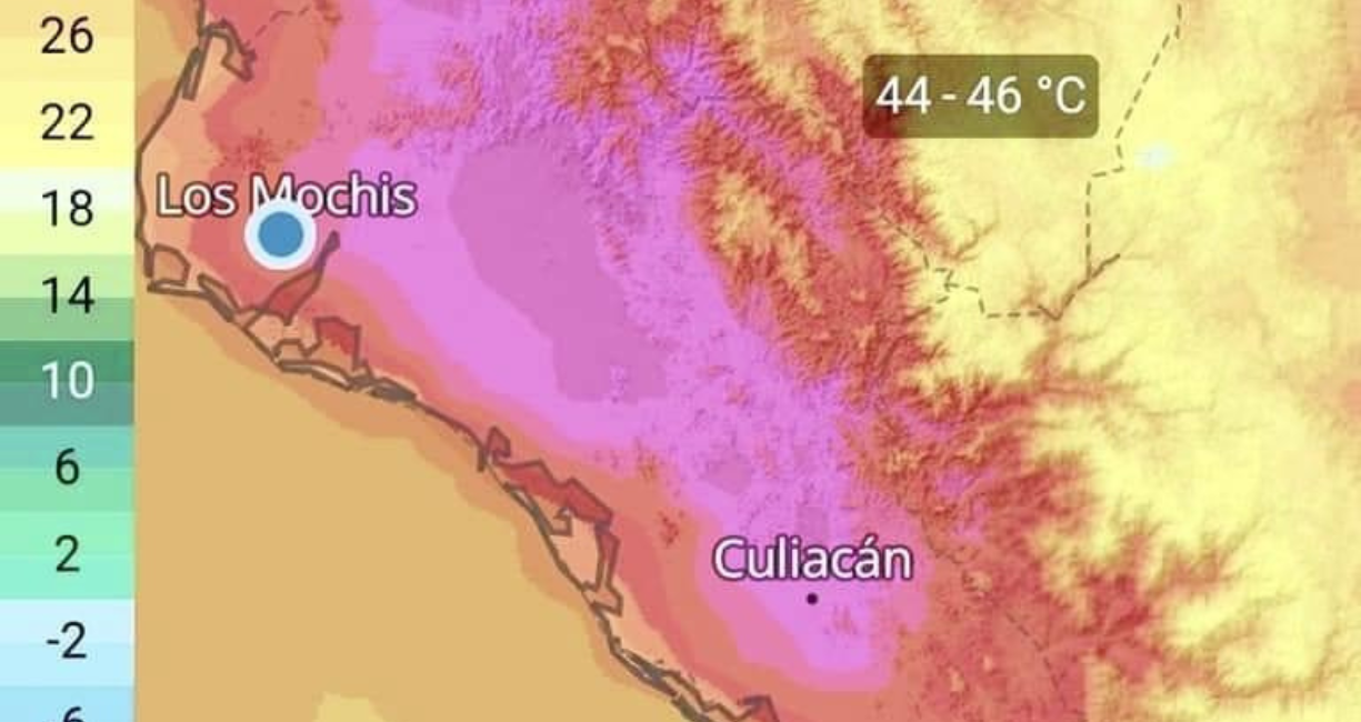 Culiacán , Sinaloa.- Este jueves sin duda tendremos un día con las mayores temperatura en Sinaloa, con máximas de 46 grados a la sombra en Choix, El Fuerte, Sinaloa y en parte de los municipios de Guasave y Ahome que es la zona de isoterma más calida de Sinaloa, esperamos sensación térmica de 50 grados en algunos sitios como Genaro Estrada y norte de Choix, expresó el geofísico Juan Espinoza Luna en redes sociales.