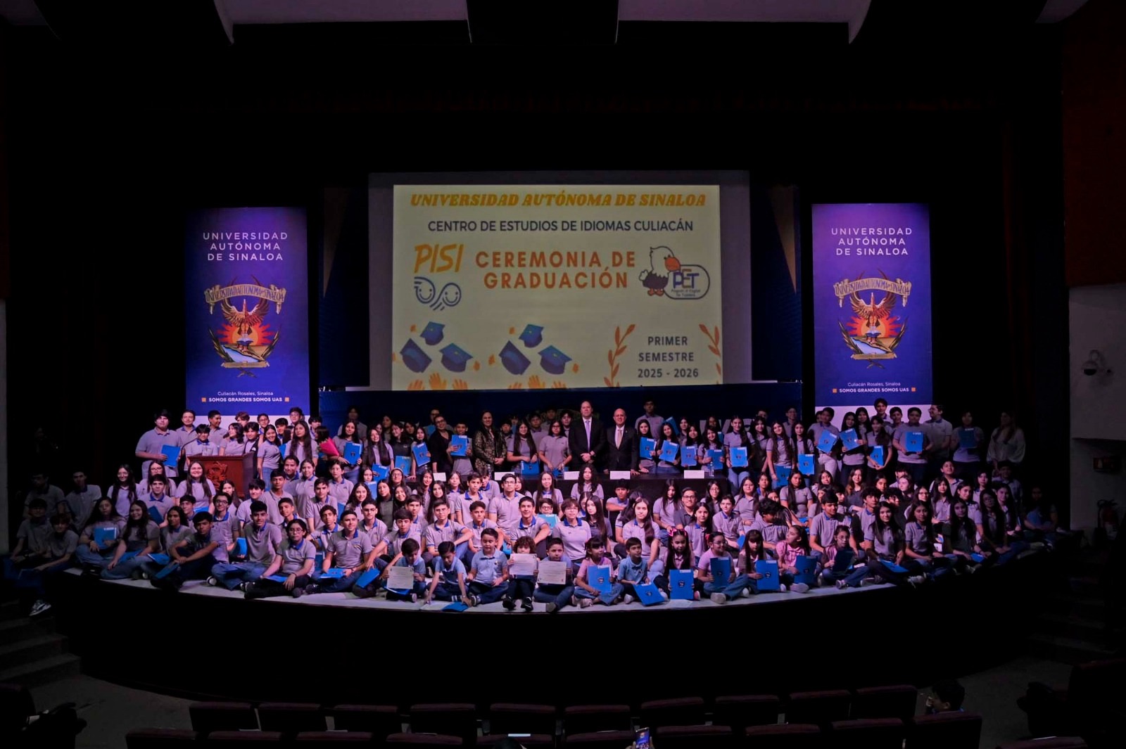 La Universidad Autónoma de Sinaloa (UAS) celebró la culminación de estudios de 165 estudiantes del Programa Infantil Sabatino de Inglés (PISI) y de 30 niñas y niños del Program of English for Toddlers (PET), mediante una ceremonia conjunta de graduación realizada en las instalaciones de la Torre Académica Culiacán.