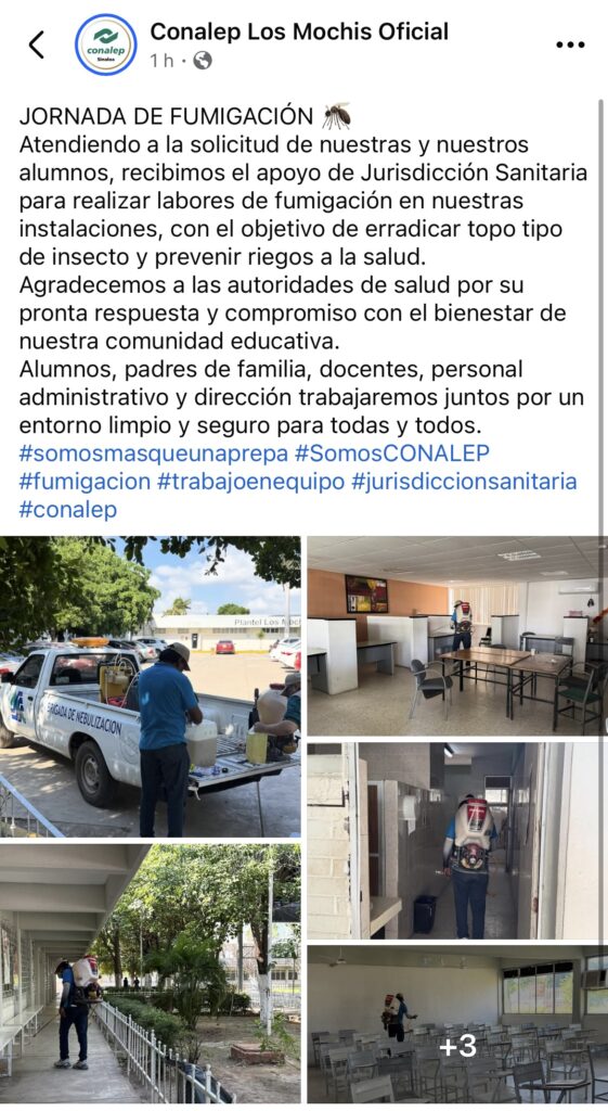Fumigan instalaciones del Conalep 1 en Los Mochis tras reportes de plaga