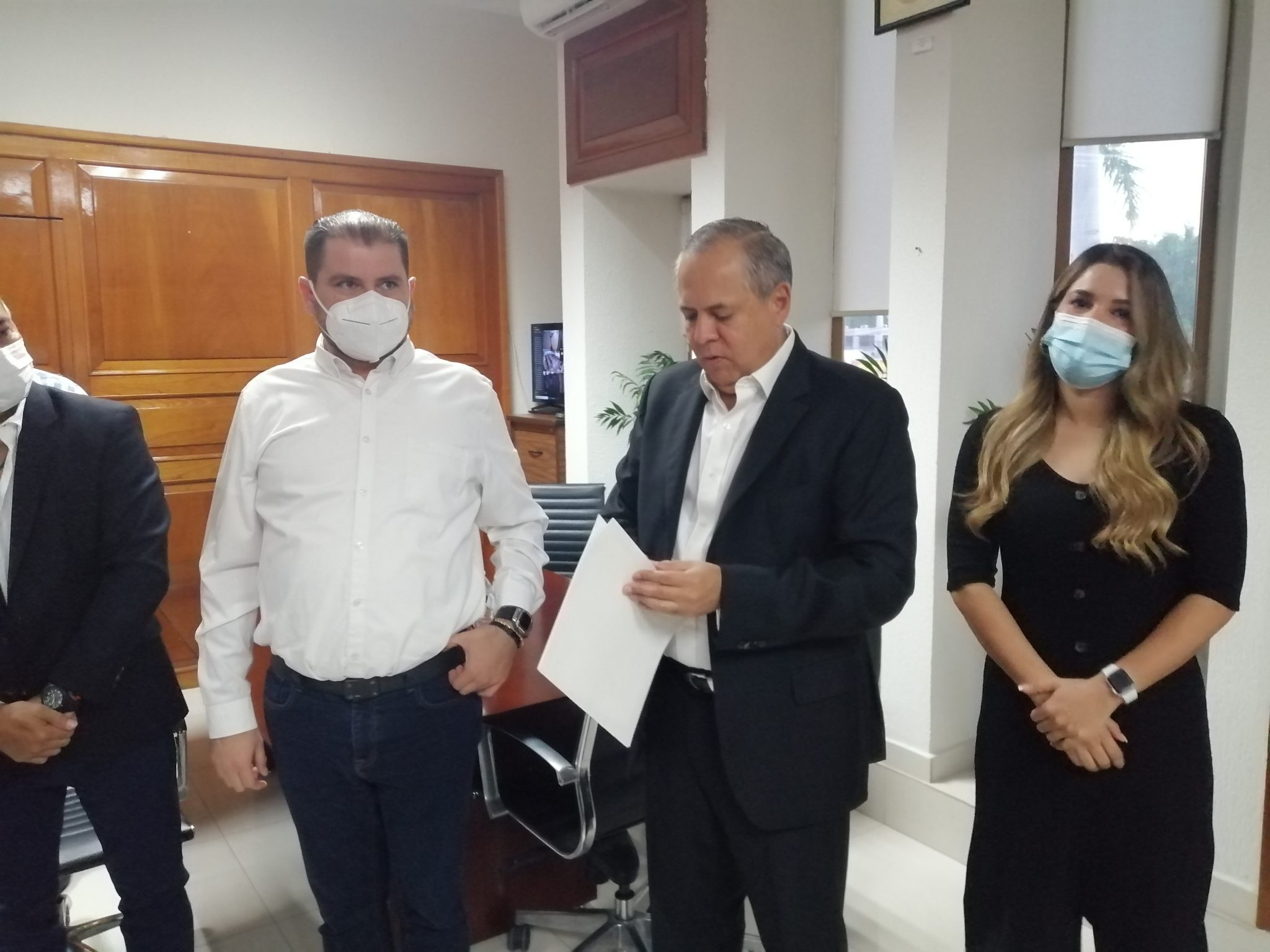 El próximo presidente municipal arribó al Palacio municipal en punto de las siete de la mañana en donde tuvo una reunión con el actual alcalde y entregó el oficio con las personas que participarían en el proceso que inicia el próximo lunes de manera formal.