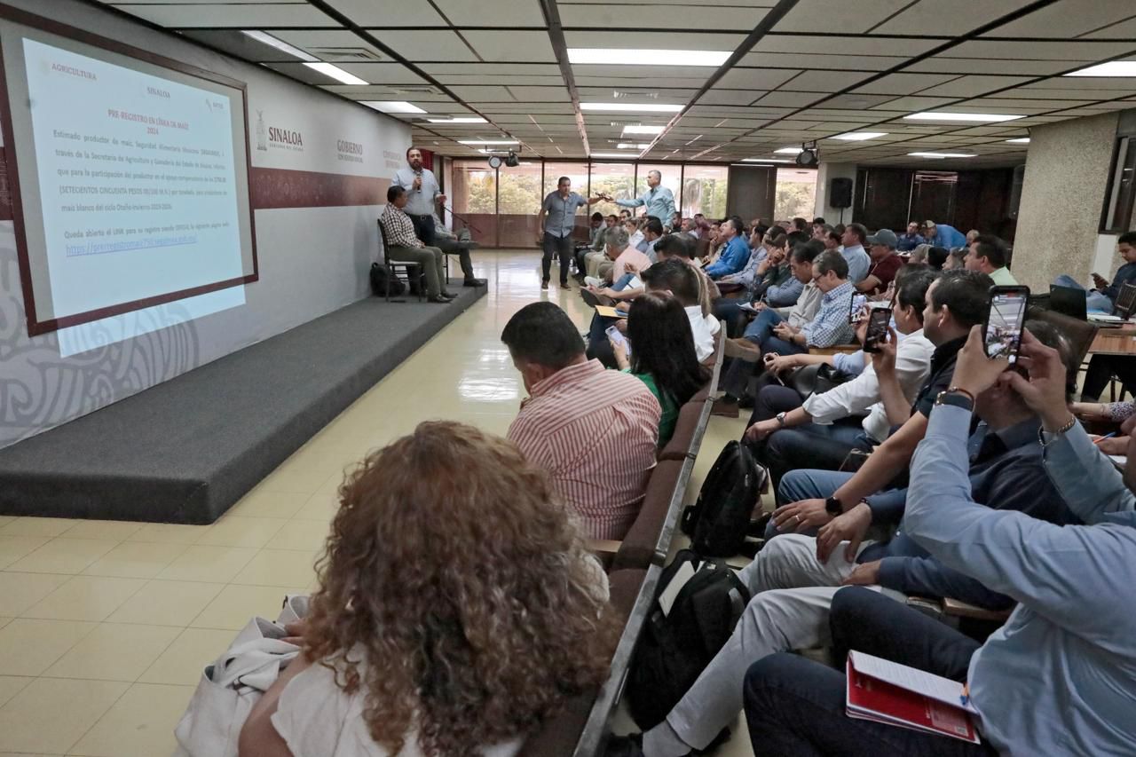Culiacán, Sinaloa, a 16 de mayo de 2024.- Una vez que SEGALMEX abrió desde este martes el prerregistro de los productores para que reciban el apoyo de 750 pesos por tonelada de maíz que fueron gestionados por el gobernador Rubén Rocha Moya ante la Federación, el Gobierno del Estado convocó a los representantes de los centros de acopio a una reunión informativa que sirvió para despejar dudas sobre el registro para este programa emergente.
