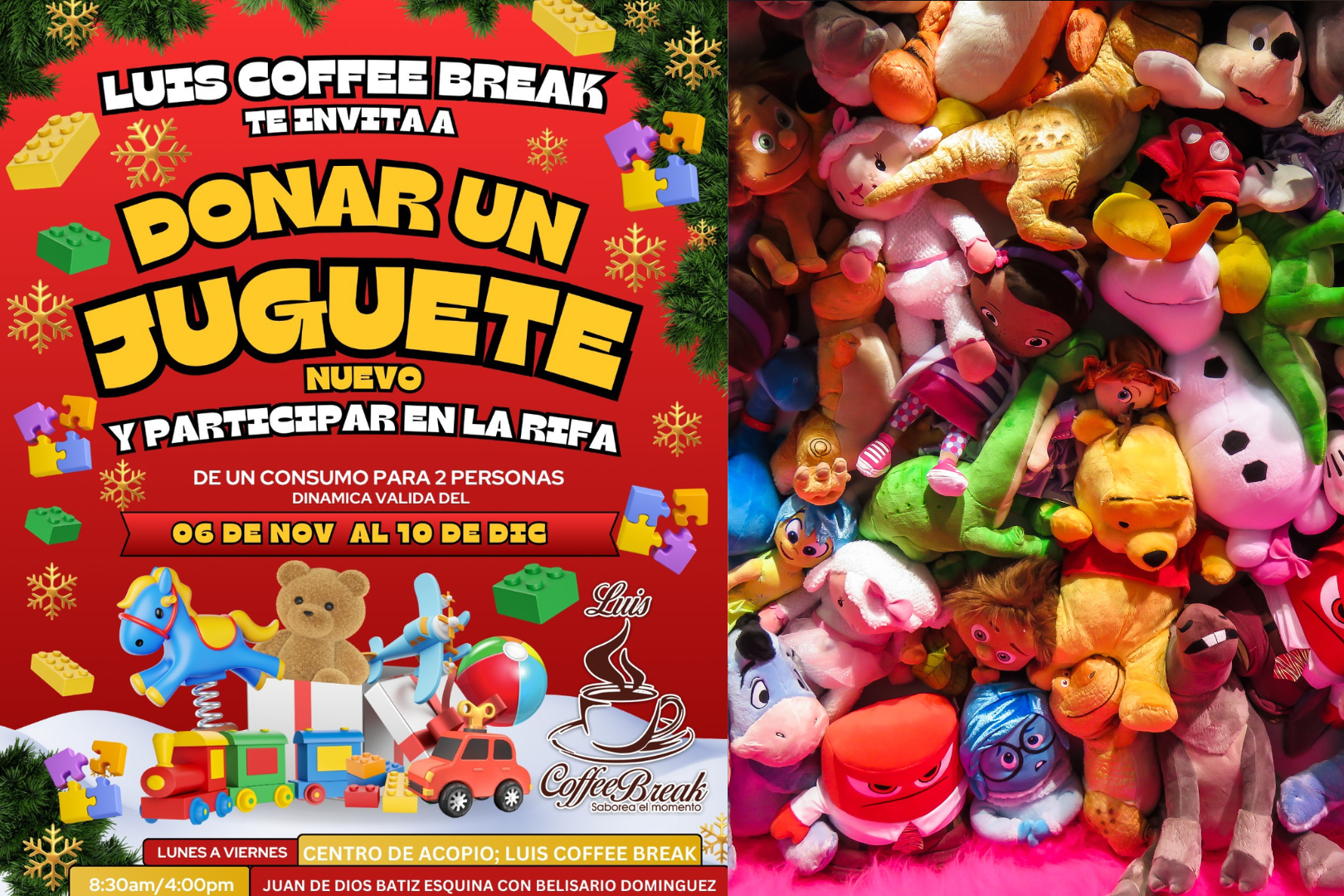 Los Mochis, Sinaloa.- Luis Coffee Break lanza una campaña de donación de juguetes nuevos, ofreciendo a los participantes la oportunidad de ganar una experiencia de consumo para dos personas en una rifa.